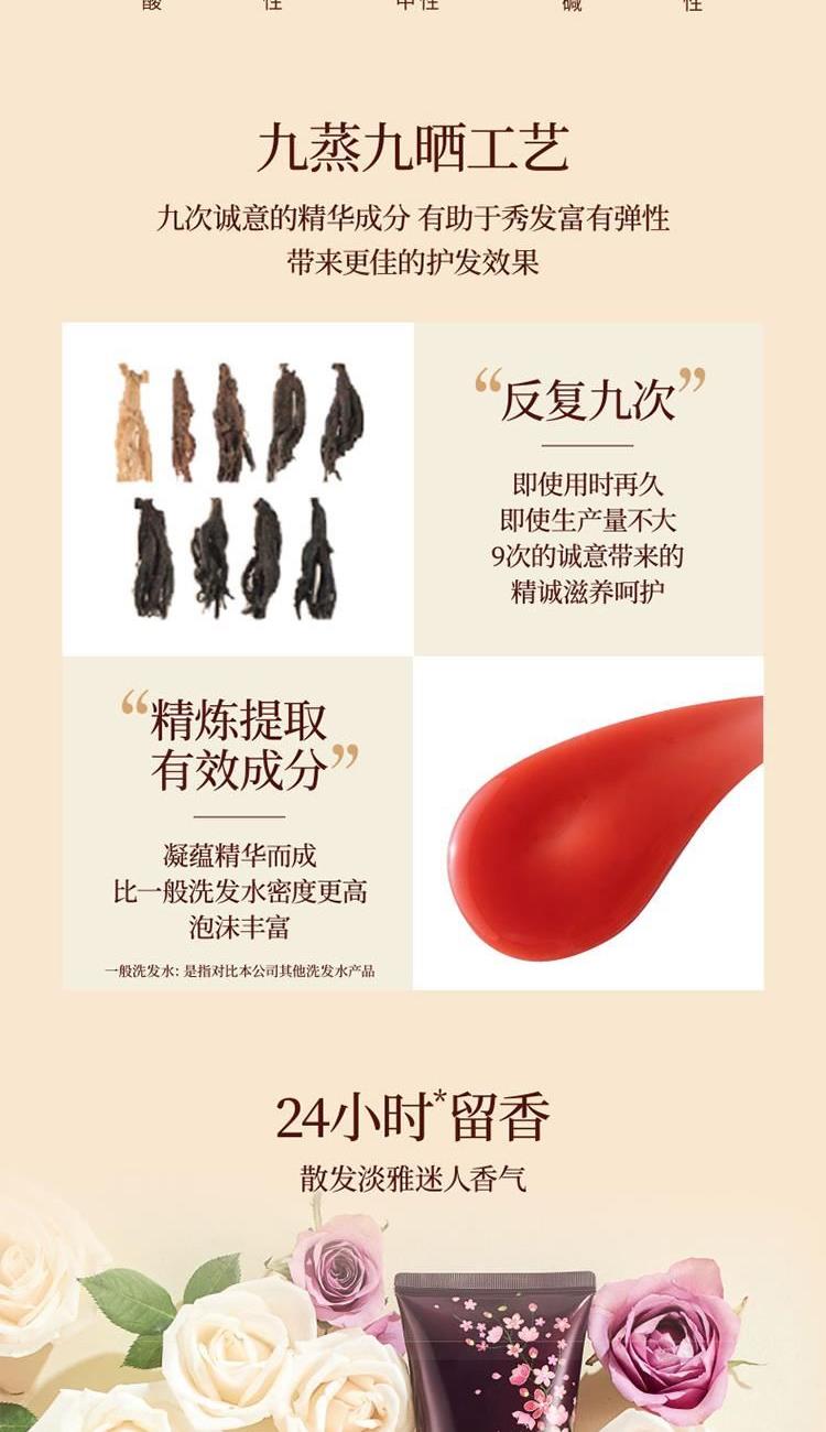 香水级香氛(馥郁香气 丝丝索饶),清洁皮肤,滋润美肌,留香更长,植物精油成分,细致渗透力,肌肤易吸收,打造润泽美肌。 洗发水:蕴含百种植物精粹,100种天然原料成分,带来全效合一营养护理,令秀发富有弹性,散发透亮光彩。补水水分,带给秀发健康和弹性,赋予秀发真正的耀眼光泽。 使用发质:针对失去活力缺乏润泽发质