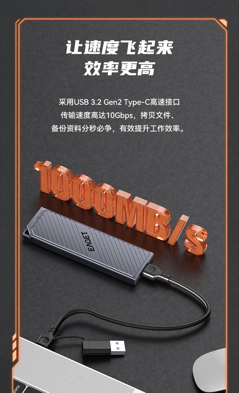 速度:900MB/S写入速度 /1000MB/S(读取速度)