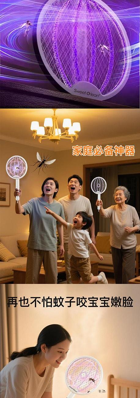 思薇科林旋转折叠多功能电蚊拍家用灭蚊神器苍蝇拍