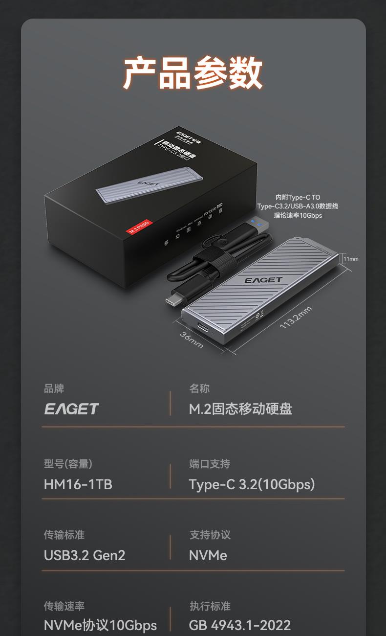 (EAGET)忆捷NVME固态硬盘HM16外接存储硬盘1T