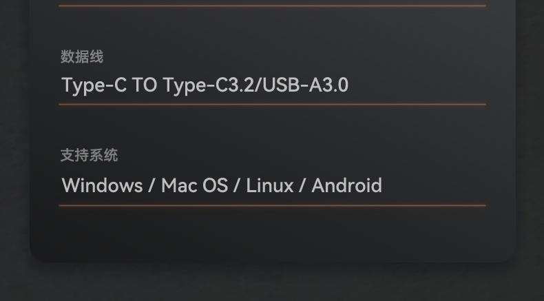 数据线:Type-C TO Type-C3.2/USB-A3.0(内附数据线)