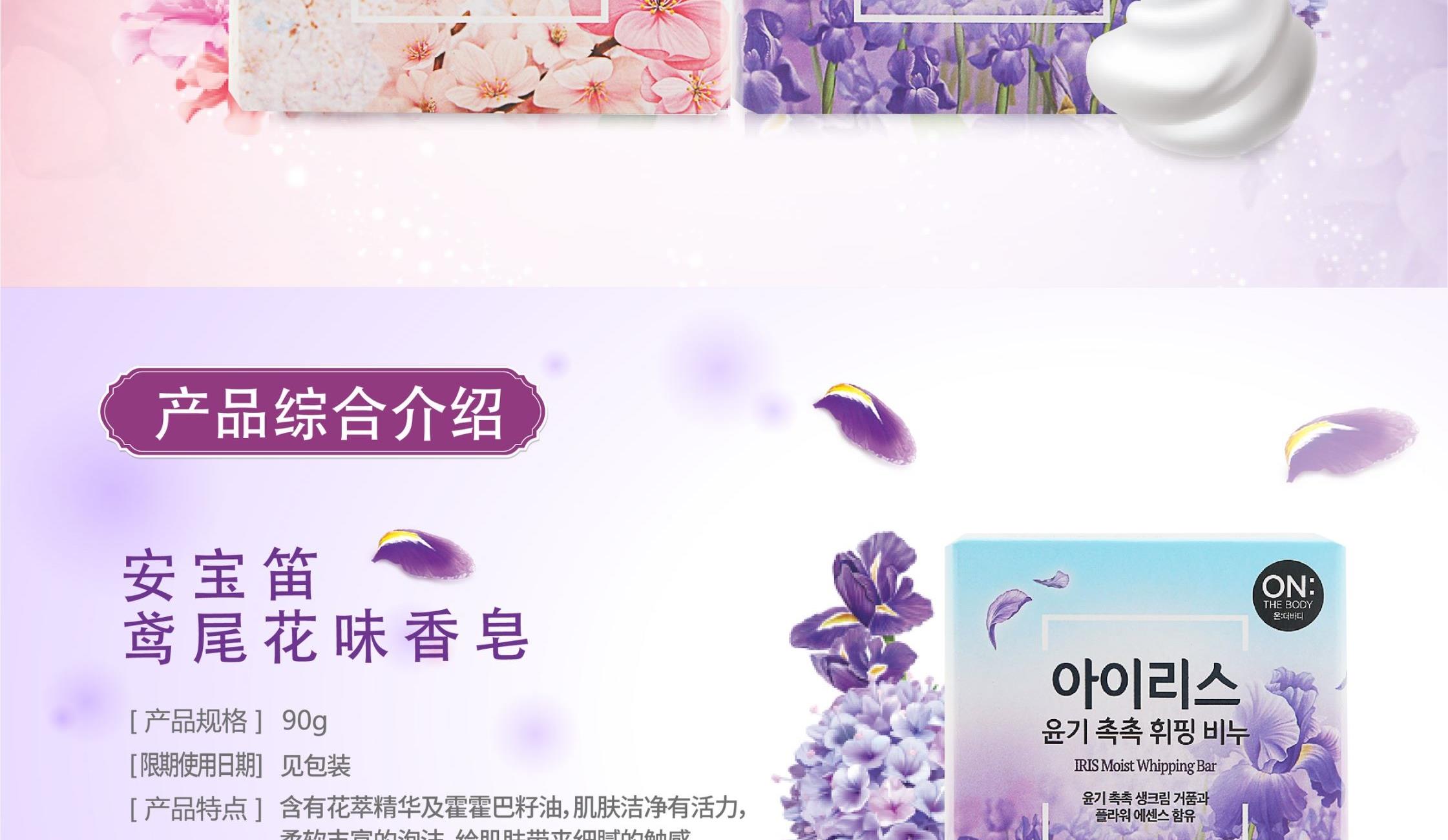 韩国进口,蕴含自然植萃成分,香皂柔和洁净愉悦洁肤。 润体乳:韩国进口,蕴含植物油成分:油橄榄果油+椰子油,不黏腻的,快速被肌肤吸收的水润感