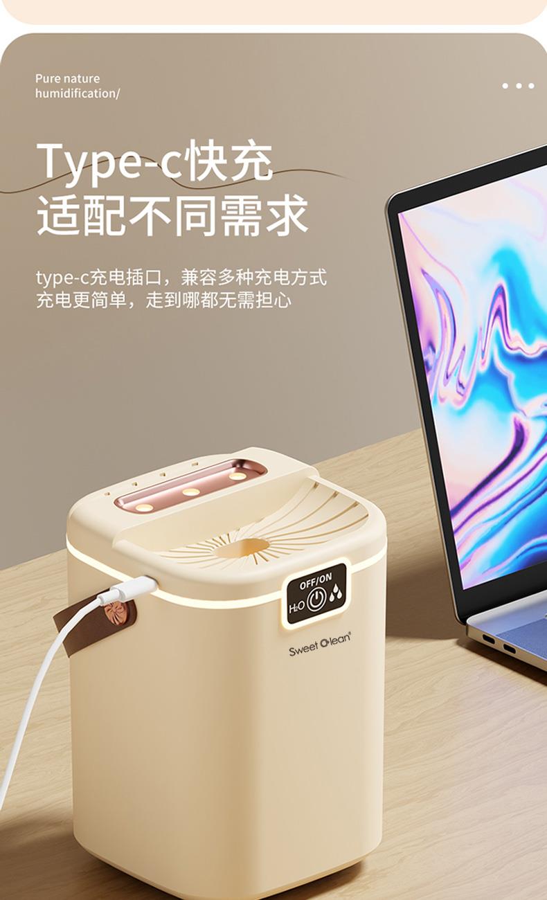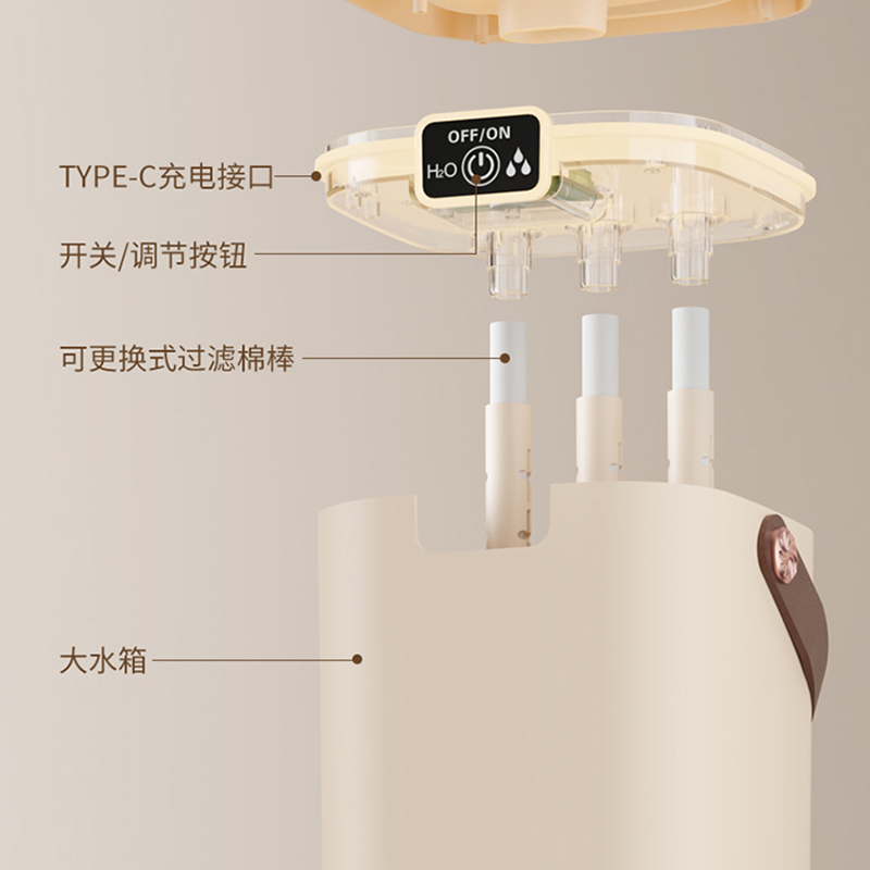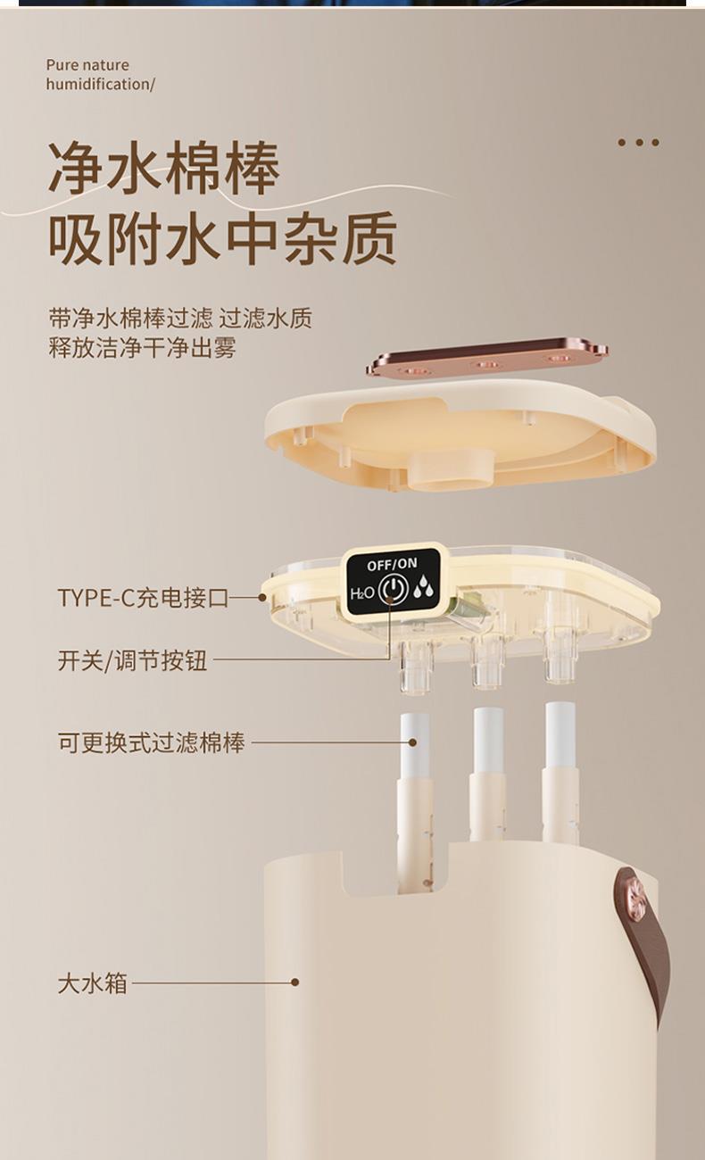 纳米细腻喷雾:超细雾化不积水不打湿桌面,补水均匀更滋润