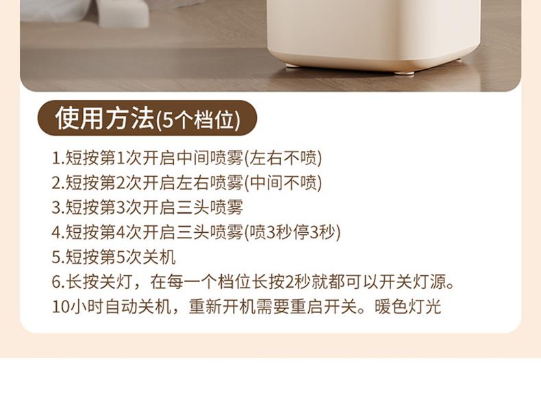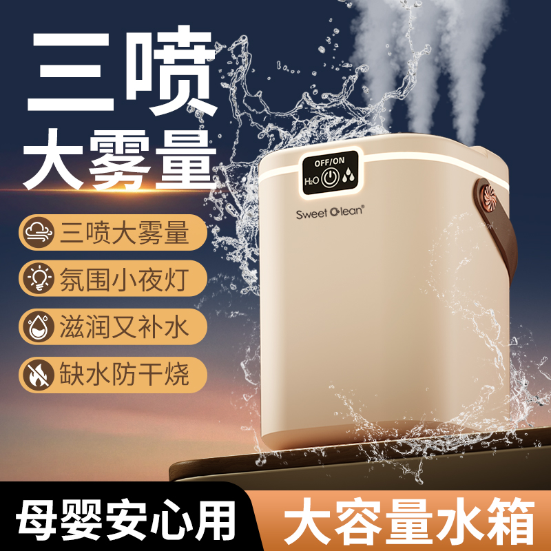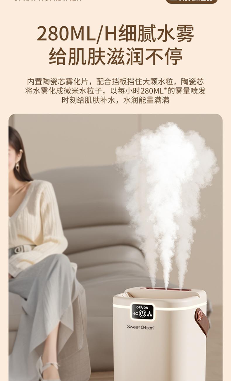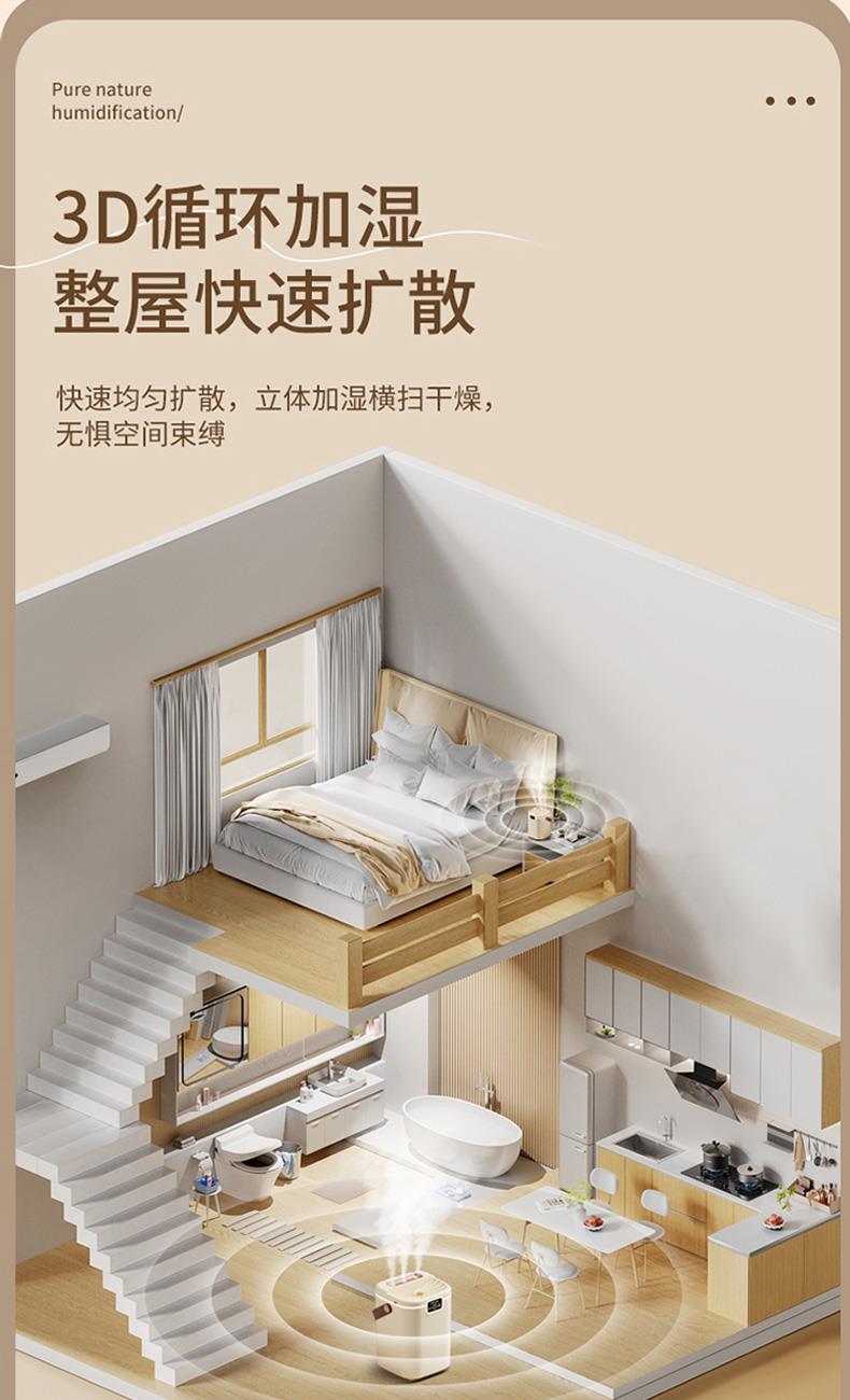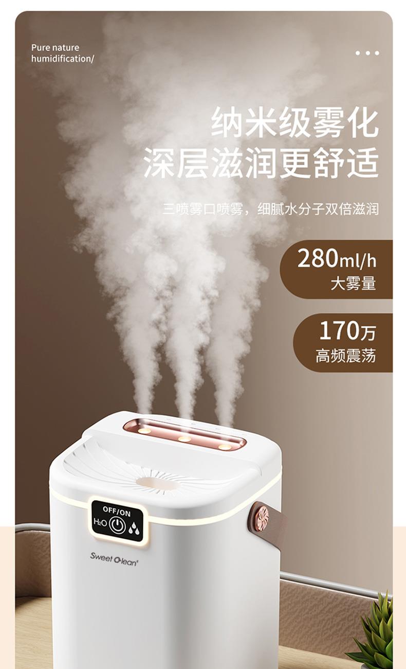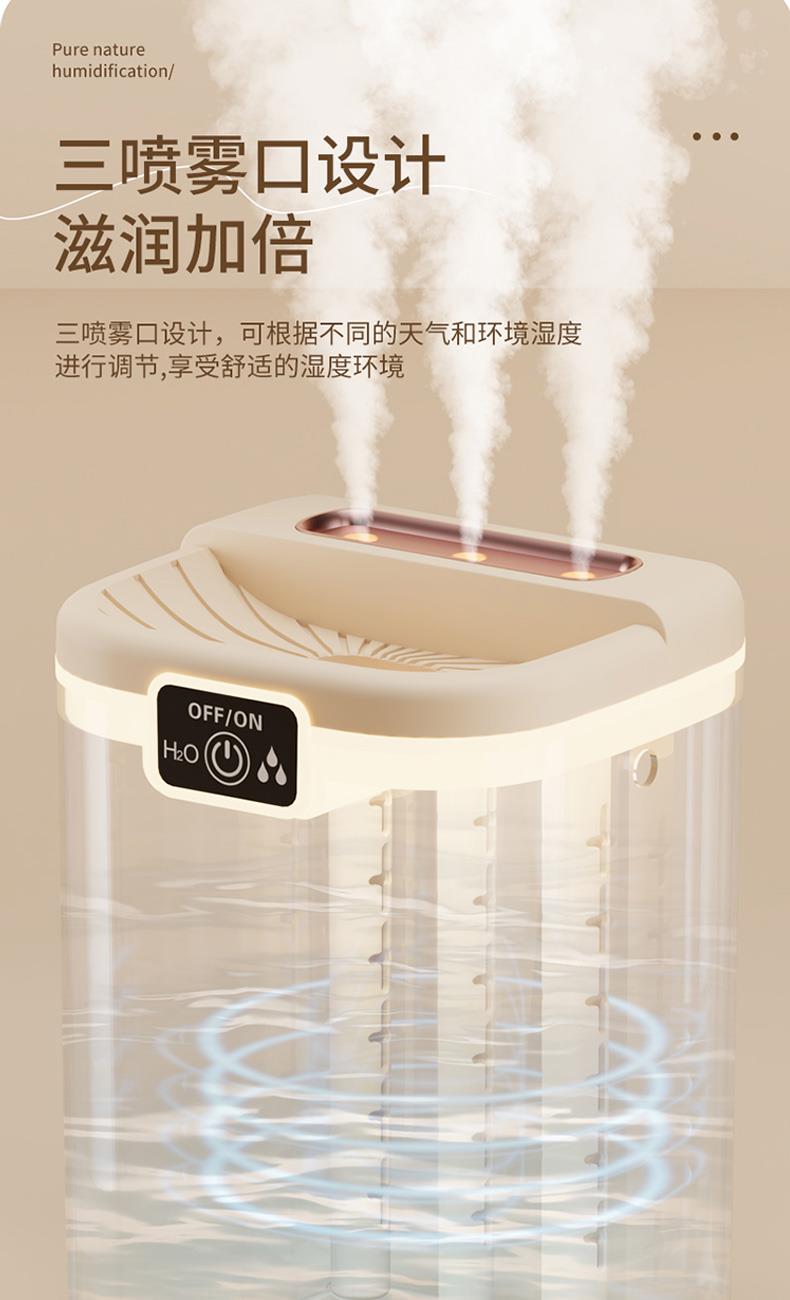 三喷强力出雾:三孔同步雾化,出雾效率翻倍,全屋快速润湿度拉满