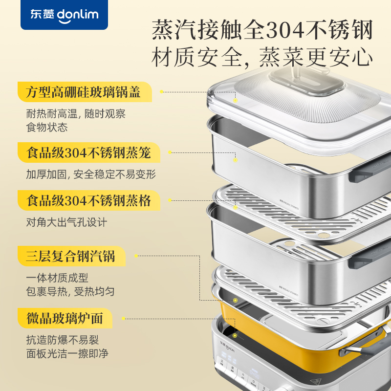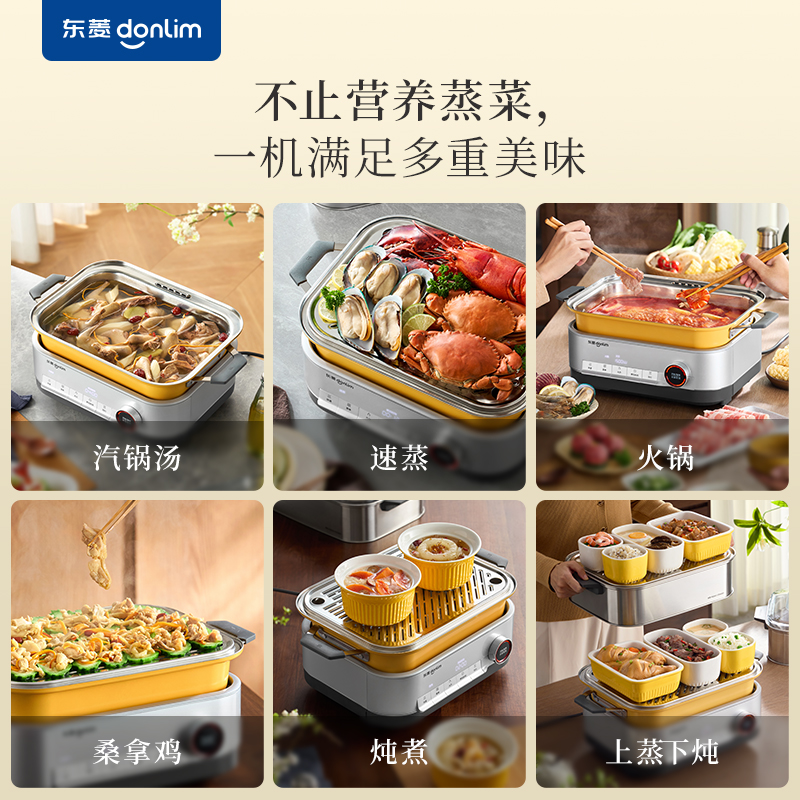 东菱多功能电蒸煮锅汽锅DL-1007电蒸锅升级全不锈钢家用