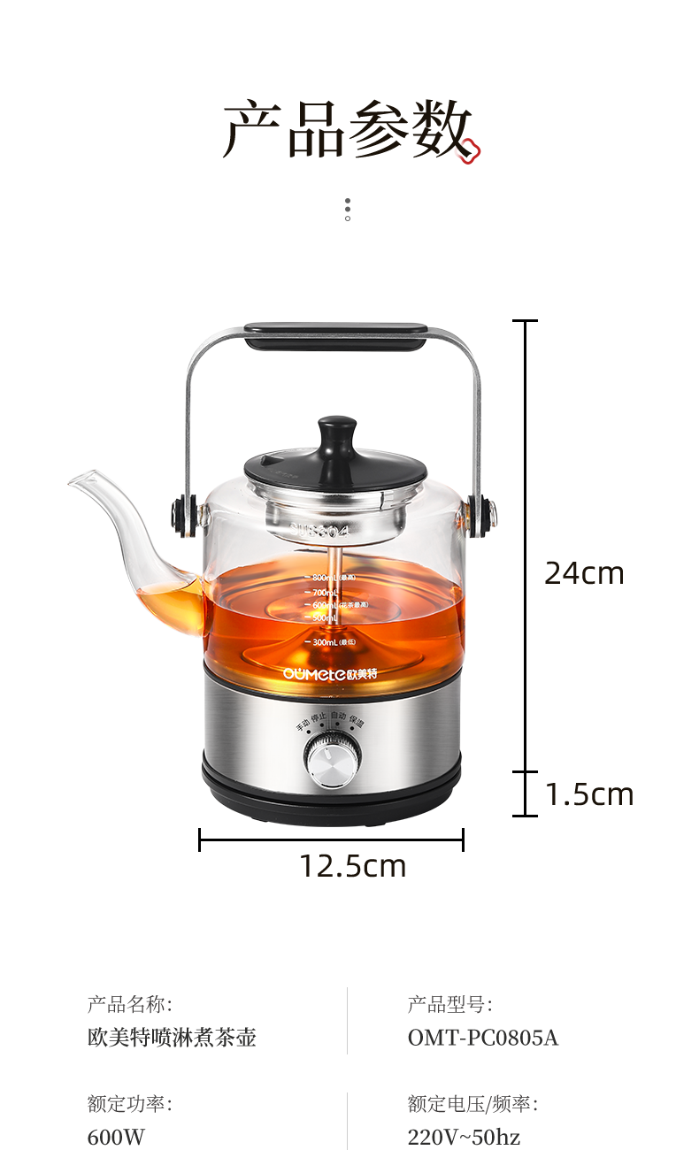欧美特煮茶器复古提梁壶玻璃黑茶茶具OMT-PC0805A