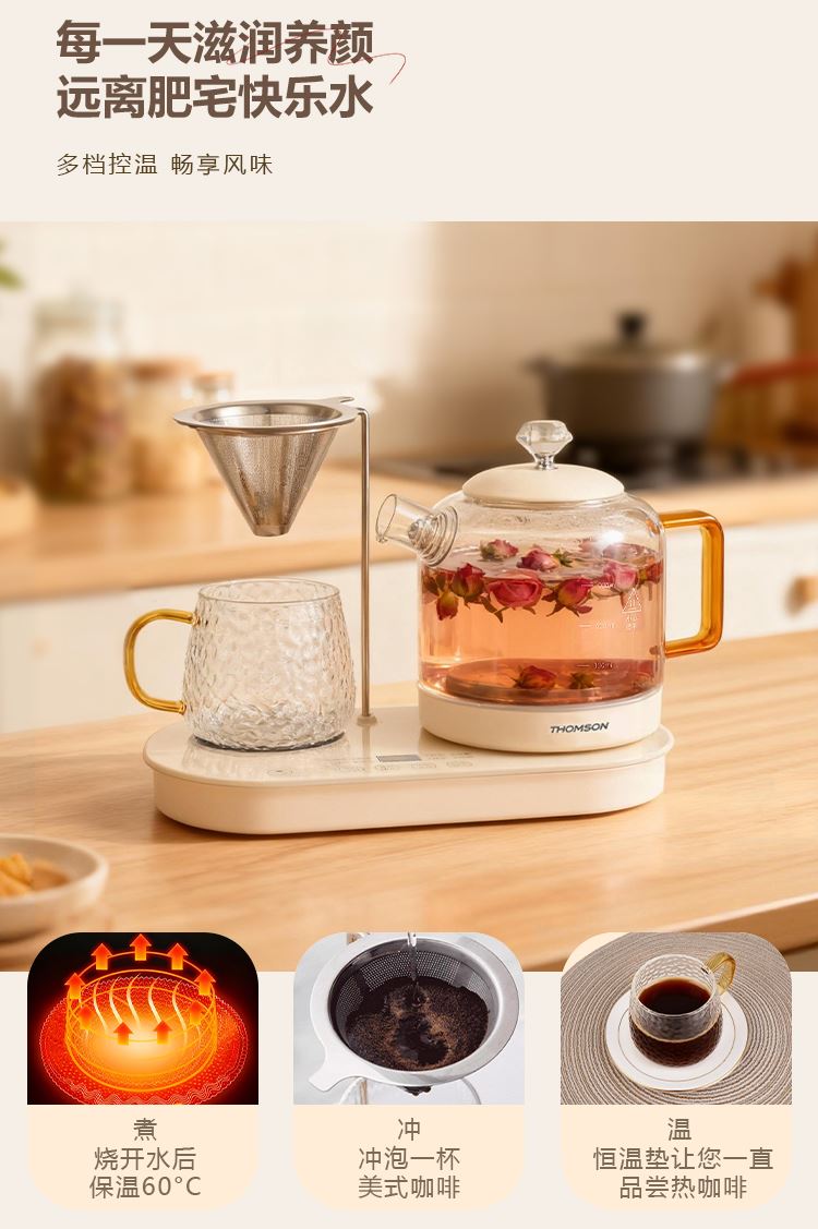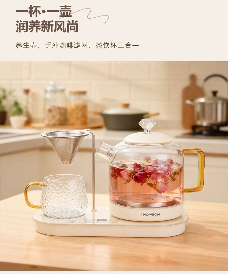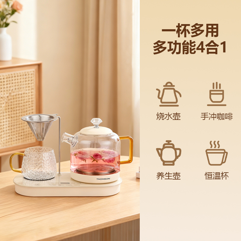 养生壶、恒温杯垫、手冲咖啡滤网、茶饮杯四合一功能,