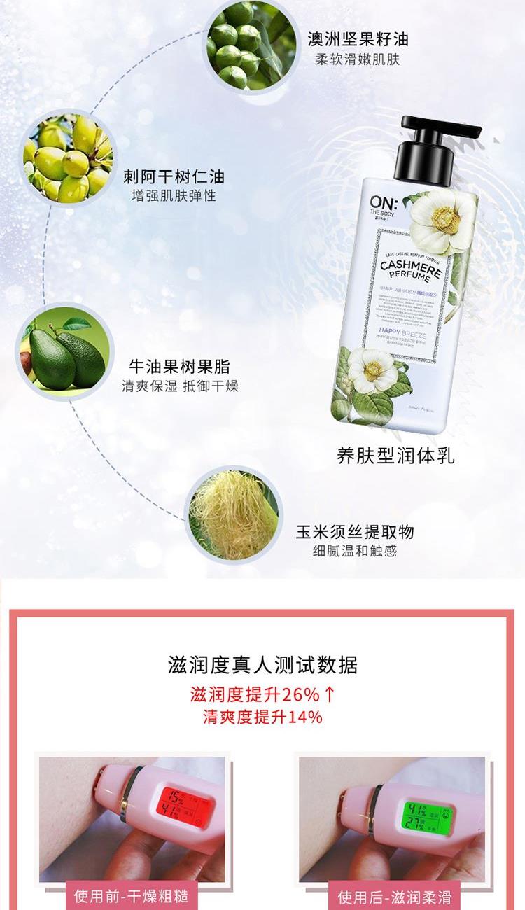 香水级氛(馥郁香气 丝丝索饶),产品功效:清洁皮肤,滋润美肌,留香更长,植物精油成分,细致渗透力,肌肤易吸收,打造润泽美肌。 润体乳:1、香水配方,持久留香; 2、添加3钟保湿精油保湿身体乳; 3、低刺激配方,5不添加敏感肌肤也使用(不添加甲酸酯、人工色素、三乙醇胺、丙二醇、矿物油)