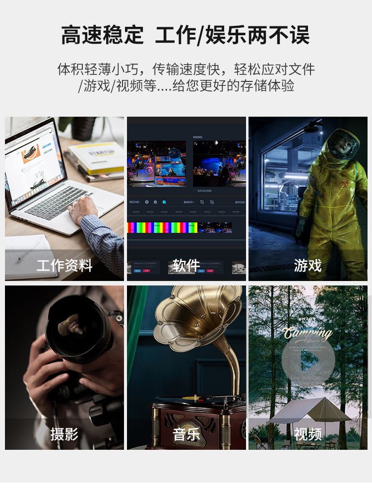 采用TypeC3.1接口 5Gbp/s高速传输 电镀金属效果,美观大气 专属礼盒包装,送礼佳品 专属订制,满足个性化服务 产品尺寸:130*80*13mm 包装尺寸:106*158*38mm 单品重量:159g