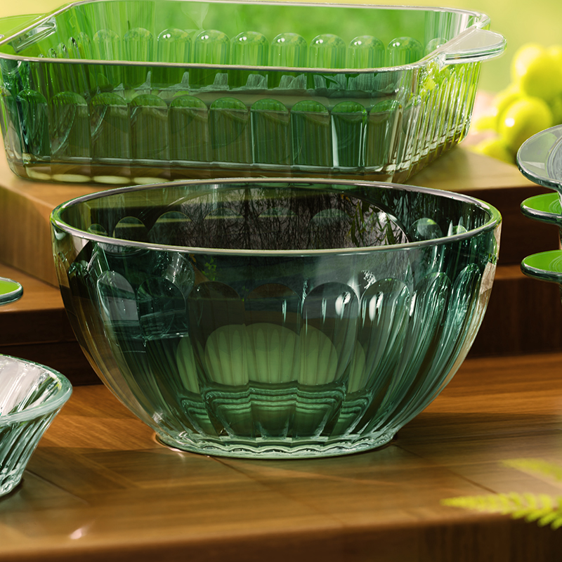 材 质:高硼色料玻璃 产品参数:小碗*4、盘子*4、大碗*1、烤盘*1 产品卖点:1.它是原色玻璃:不是表面涂层,杜绝铅镉等重金属析出。 2.它是高硼硅材质:能从冰箱直接进烤箱,不炸裂,不娇气。 3.它是顶配厚度:竖纹肌理,重工加厚,手感无与伦比。 只服务懂行、追求极 致生活品质的客户。礼盒发售中,详情私信。
