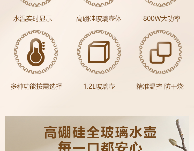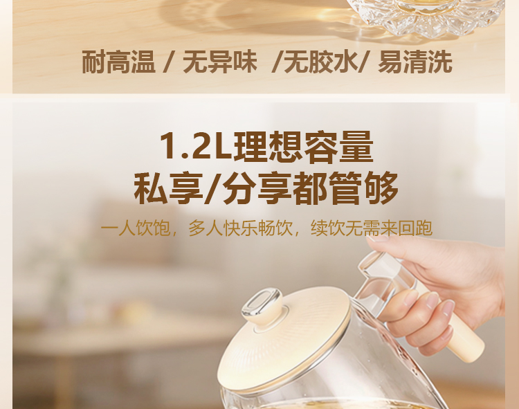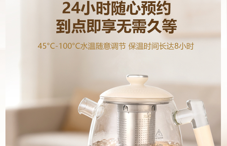 45°C-100°C水温随意调节,适用各种饮用需求,保温时间长达8小时,温奶泡奶方便实用