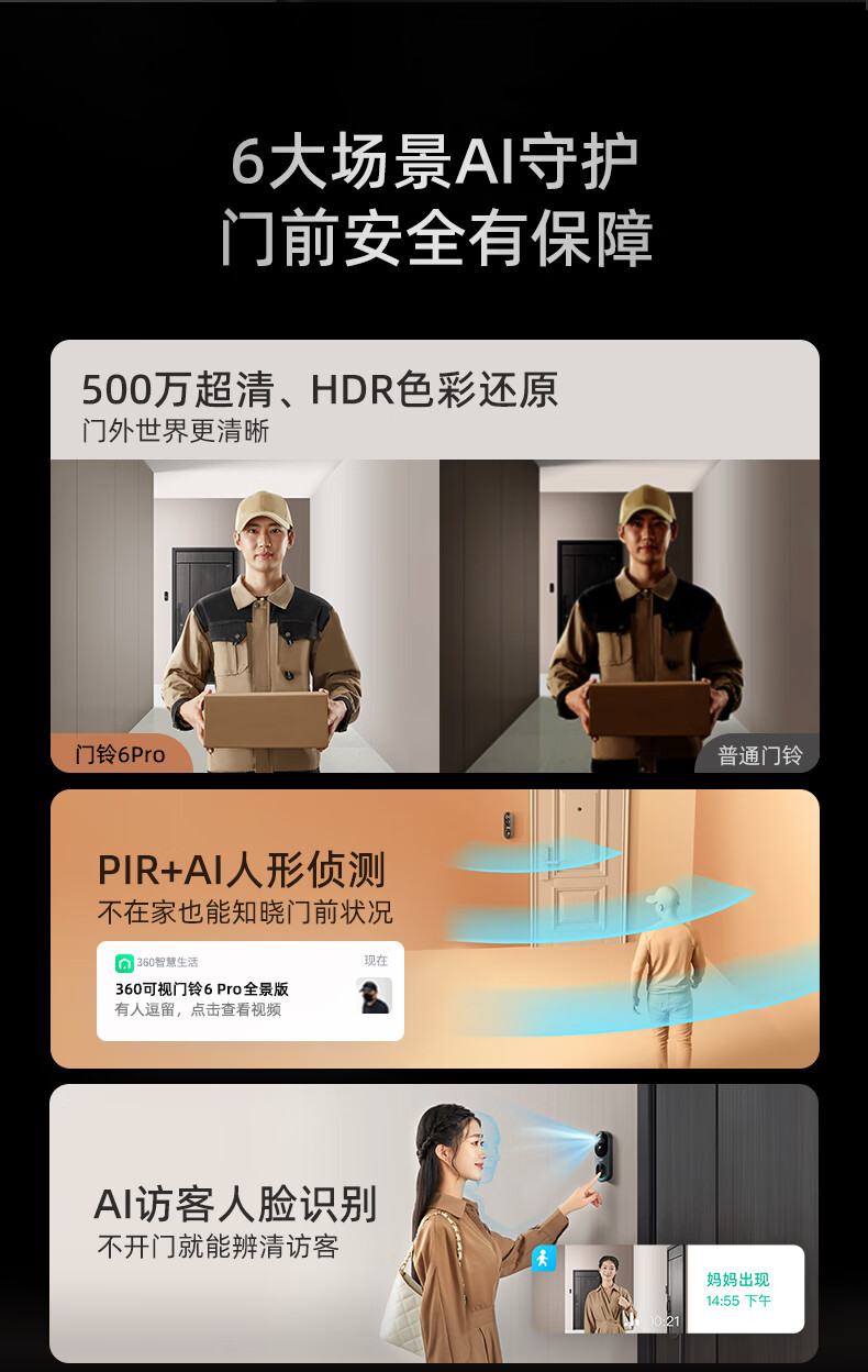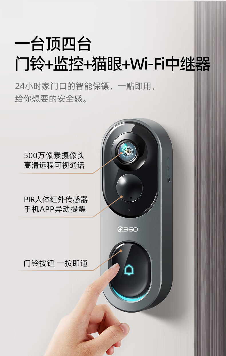 360可视门铃6Pro500万超清画质手机远程查看对讲