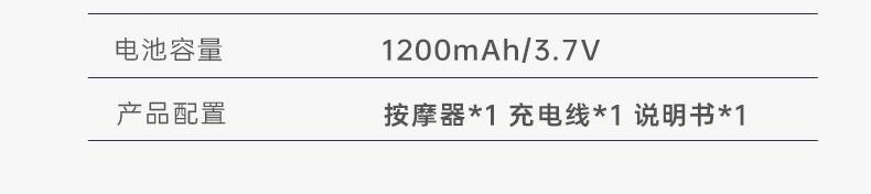 工作时长 :充电3H,每天用15分钟,可持续一周