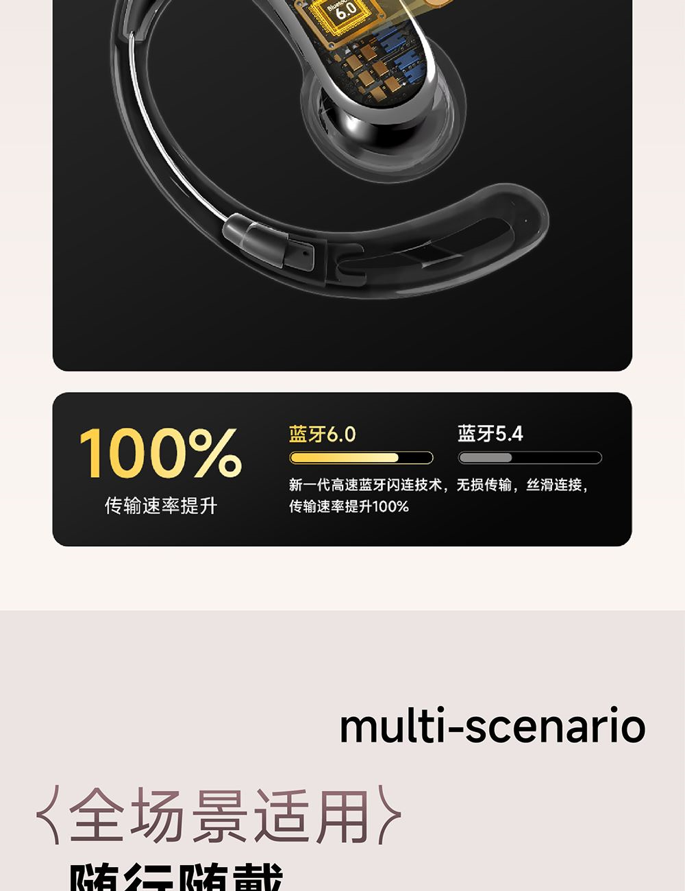 · 蓝牙6.0无线稳定连接,覆盖范围广,功耗低,兼容性强