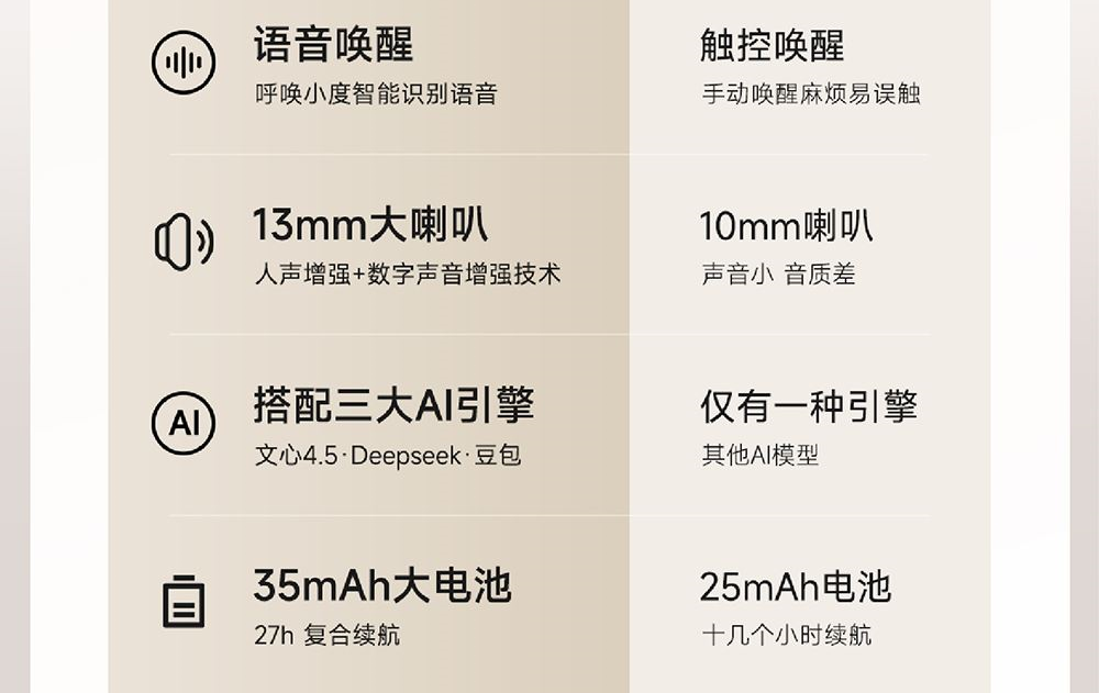 . 触控按键,激活语音助手/接听电话/音量调节/歌曲切换轻松操作