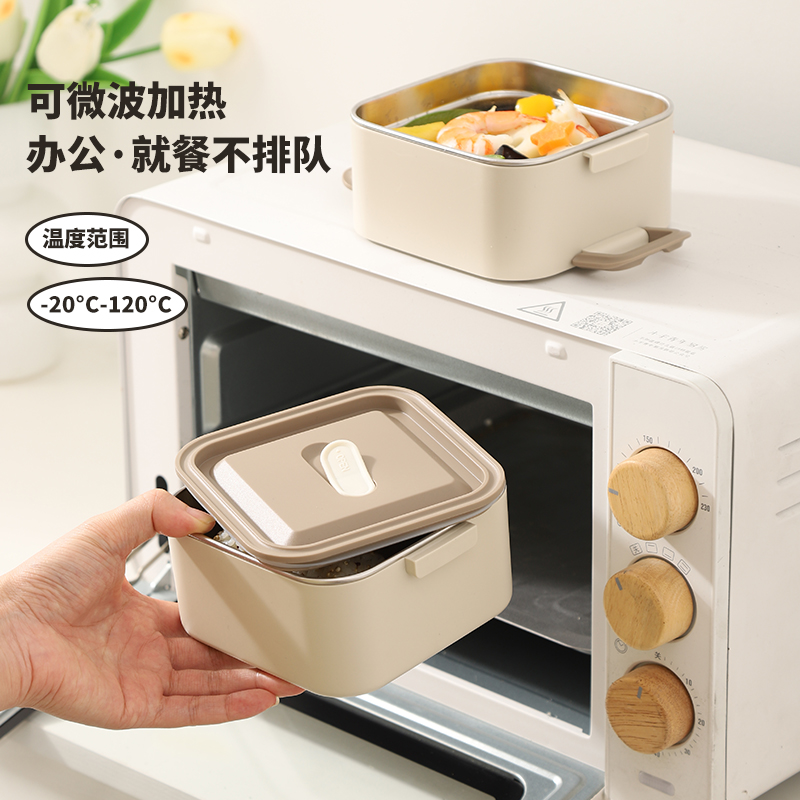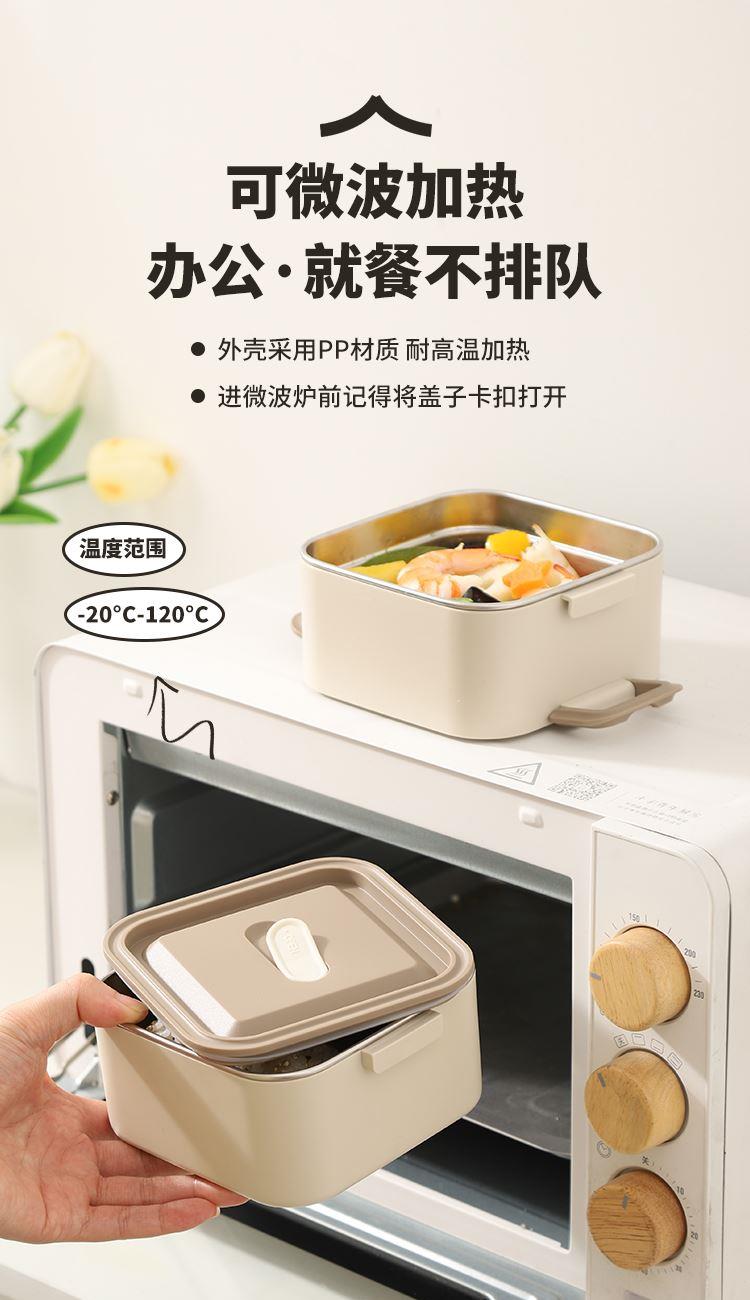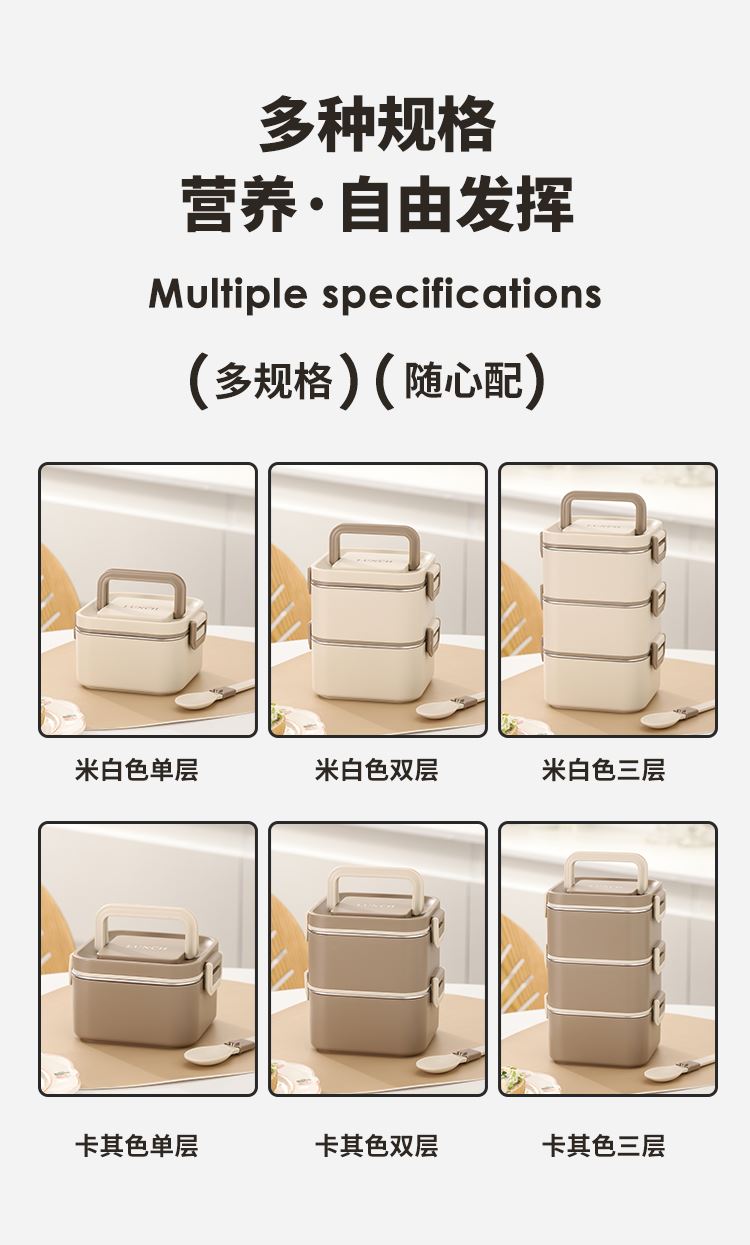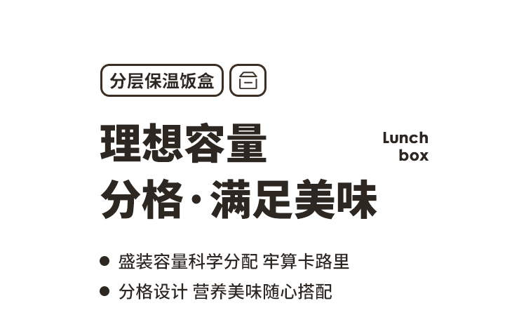 三格2100ML 食品级304不锈钢内格,可直接拆卸清洗,不藏污垢,健康安心每一餐; 一格一味,自由搭配,营养分隔不串味; 层层独立密封盖,有效防止汤水撒漏, U型卡扣提手,外出携带更方便;
