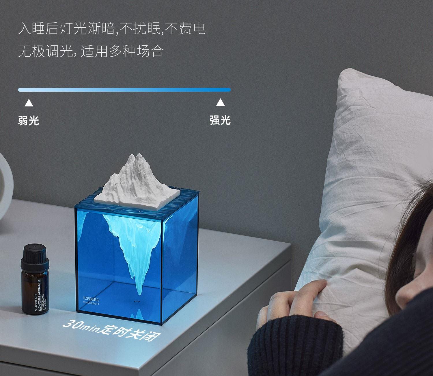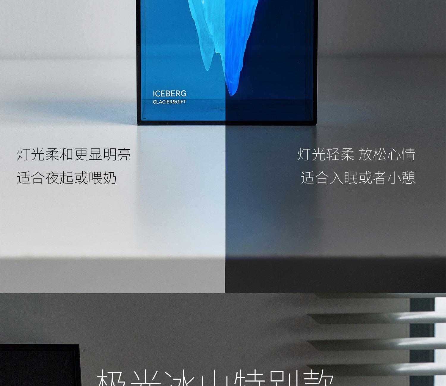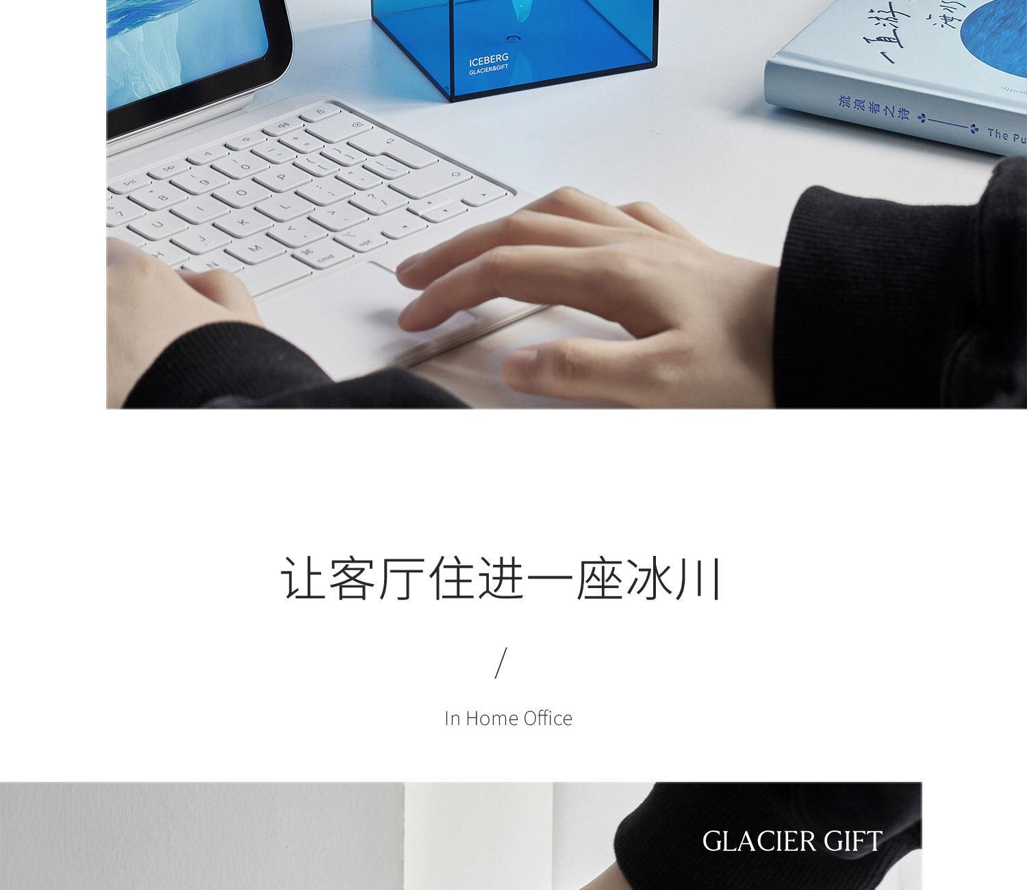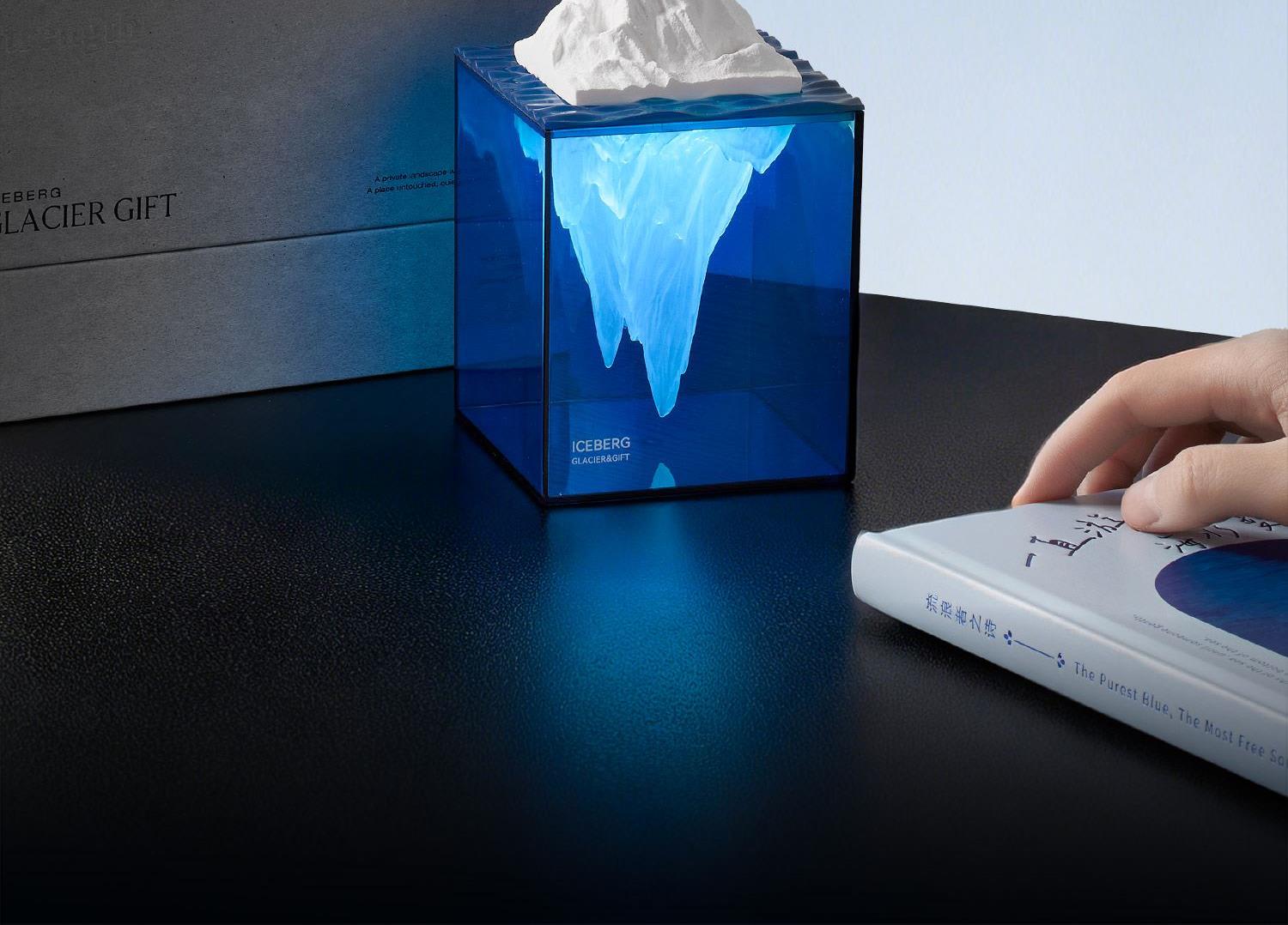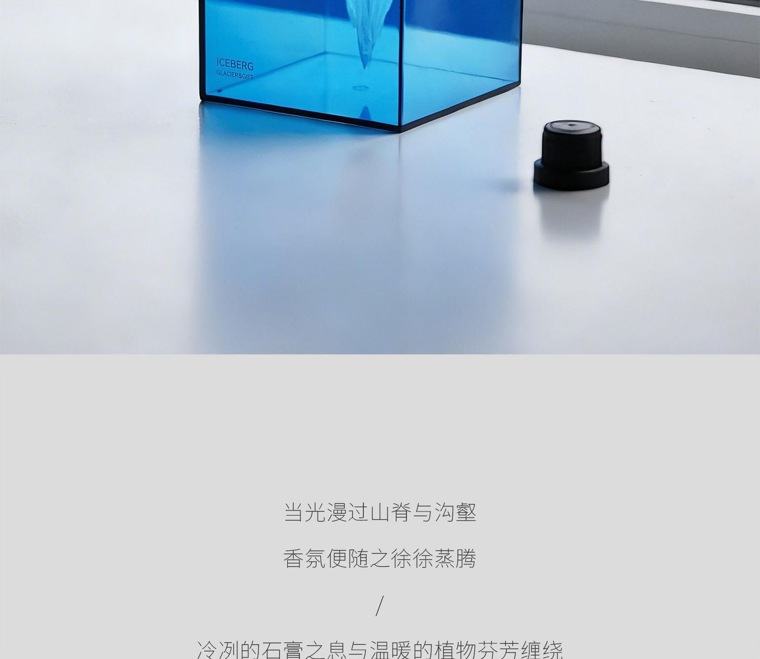 特点:1、以冰川/冰山精神为内核的情绪型家居美学的设计理念,集夜灯+香薰+摆件为一体组合套装。