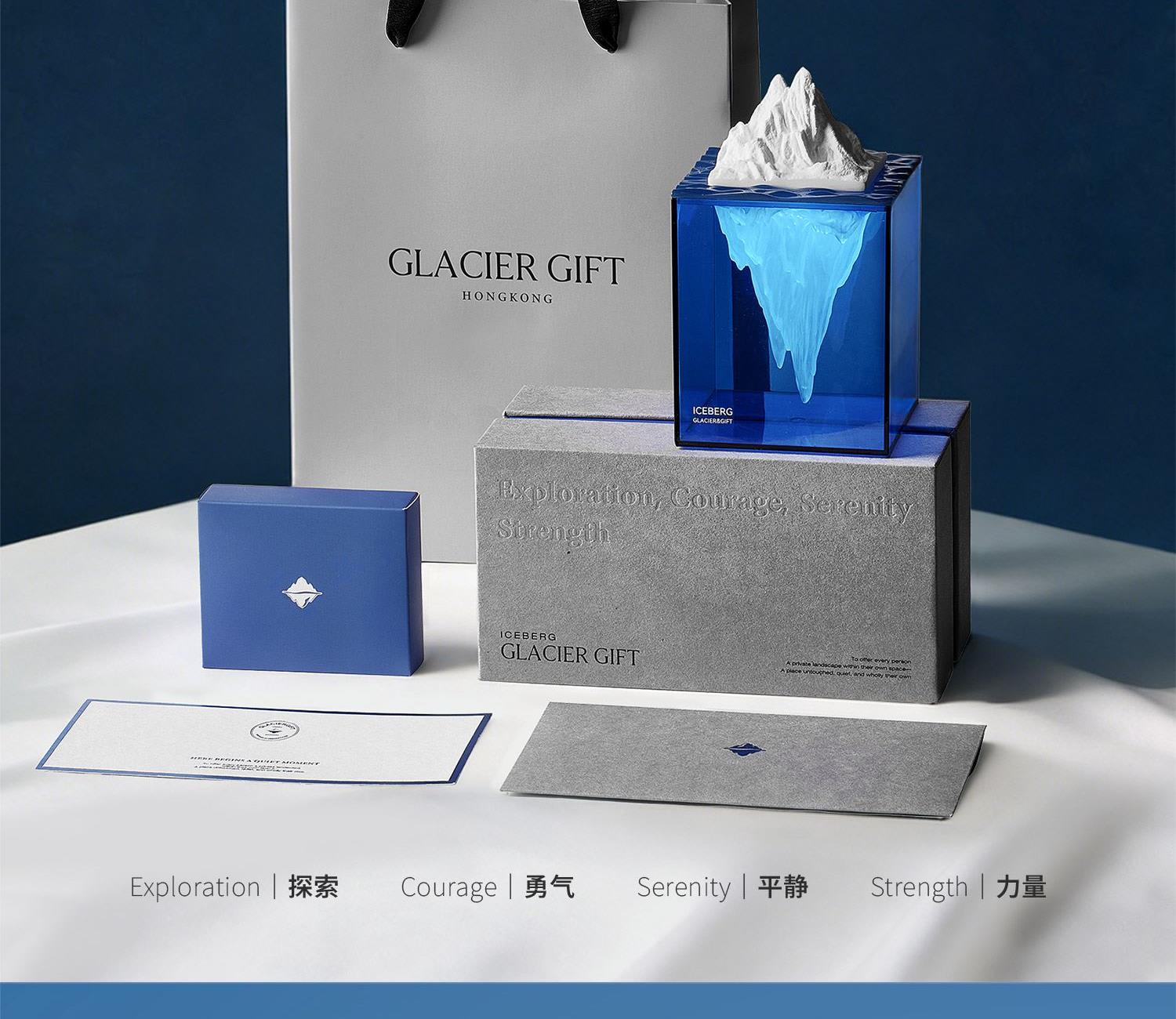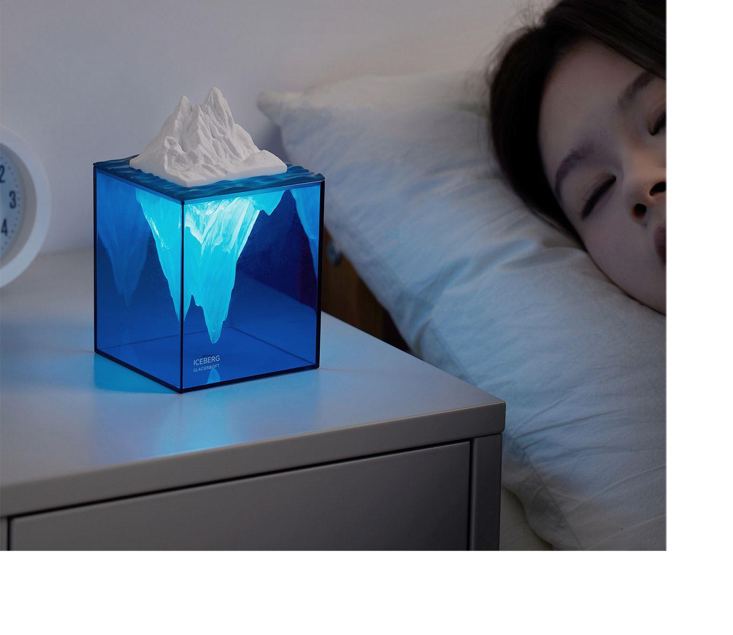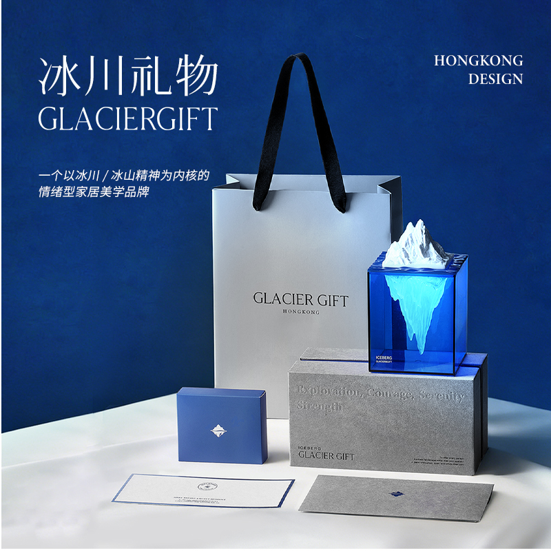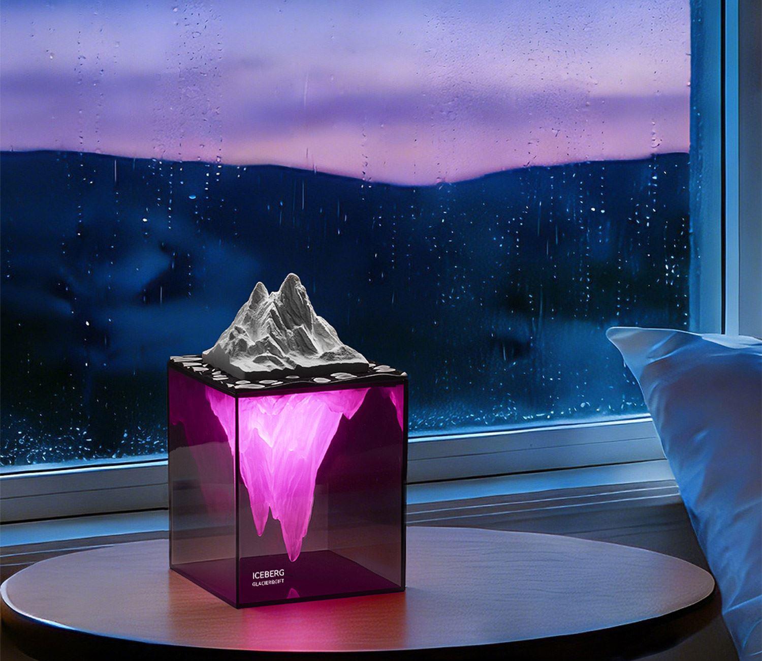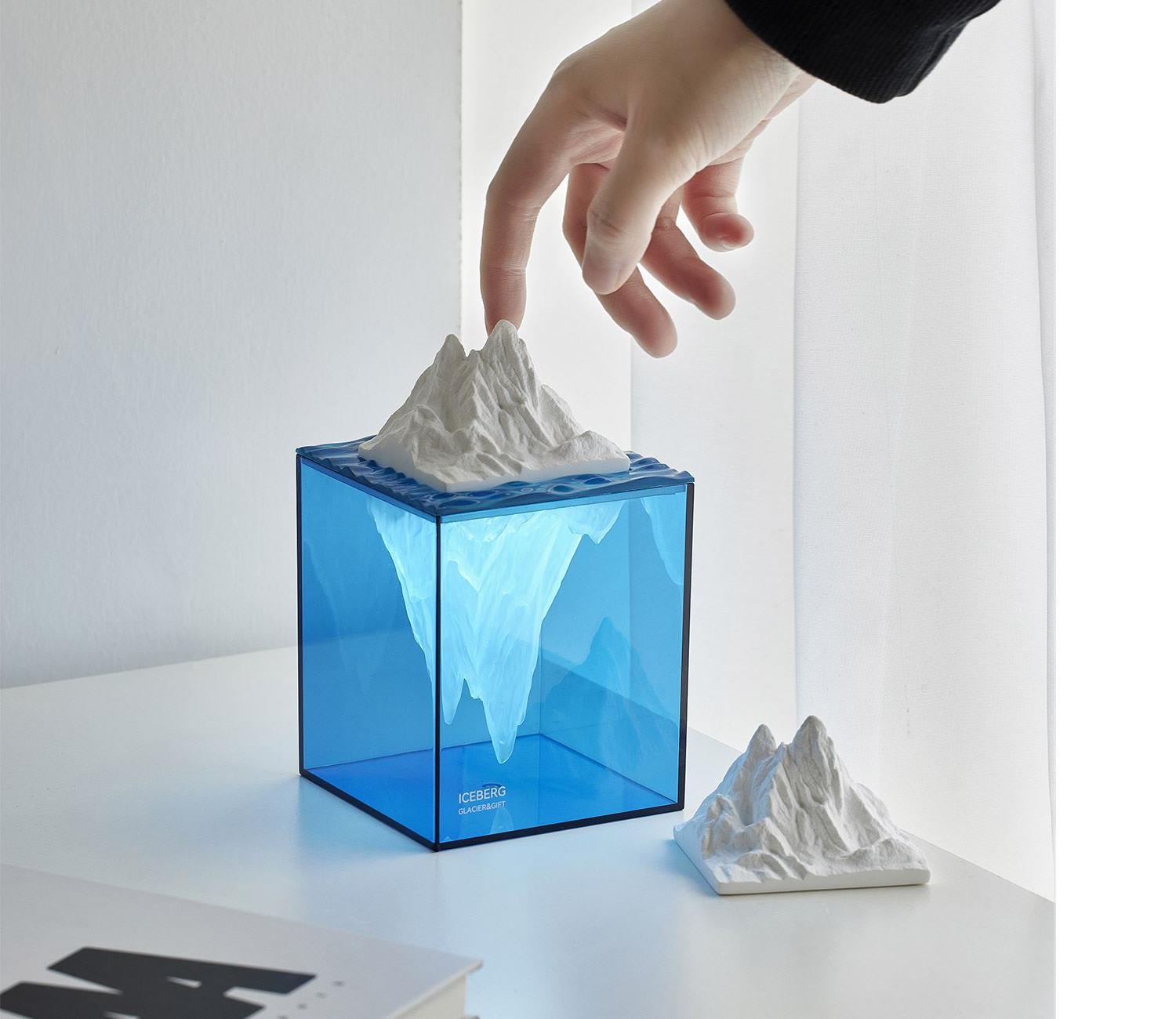 特点:1、以冰川/冰山精神为内核的情绪型家居美学的设计理念,集夜灯+香薰+摆件为一体组合套装。
