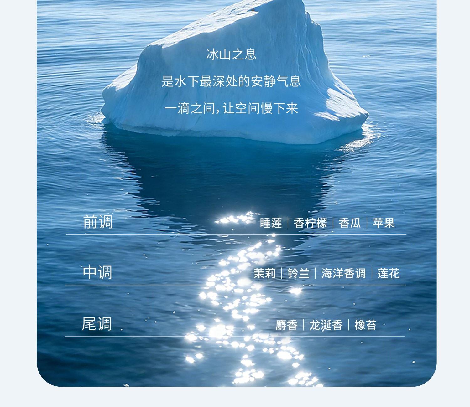 3、特调香调-冰川气息,滴2-3滴香薰精油在扩香石上,360°散香均匀,轻松做自己的调香师。(需另外购买)