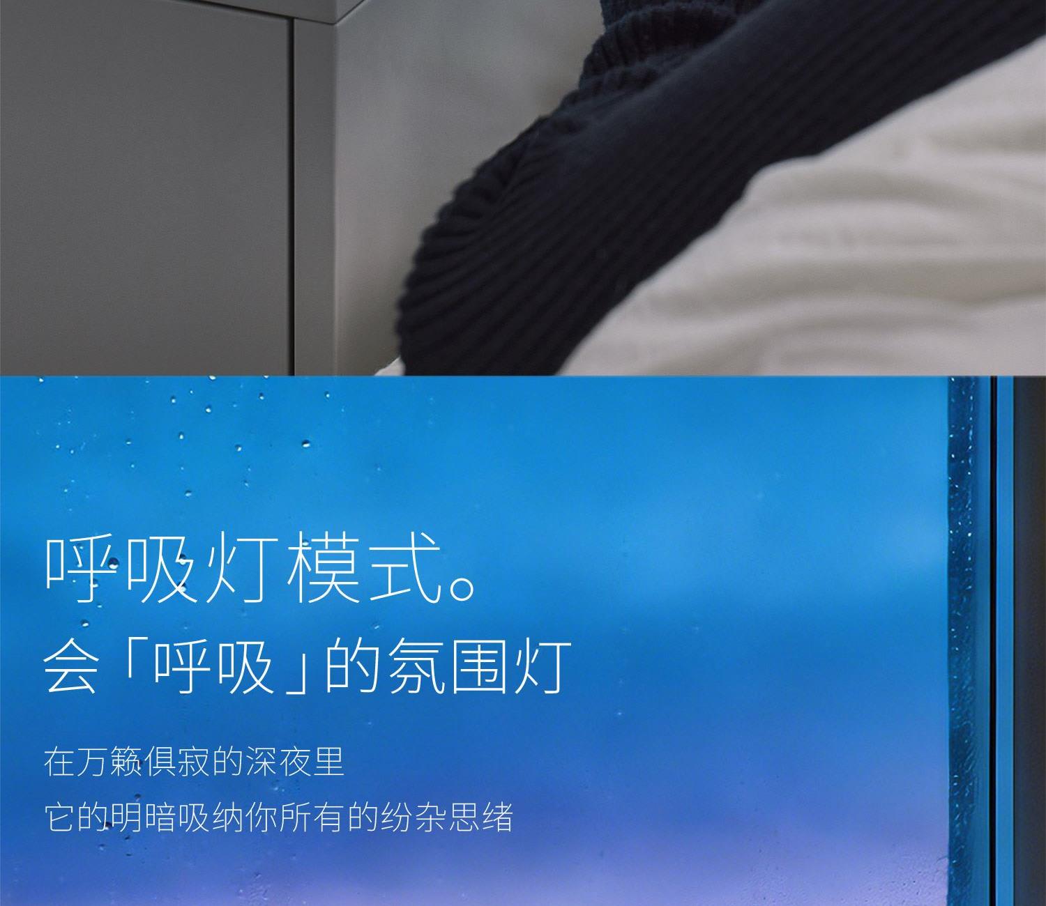 4、多档位一键可调光源模式( 常亮模式/呼吸灯模式/伴睡模式),双击无极调节亮度,氛围感拉满,夜间使用更加舒适。