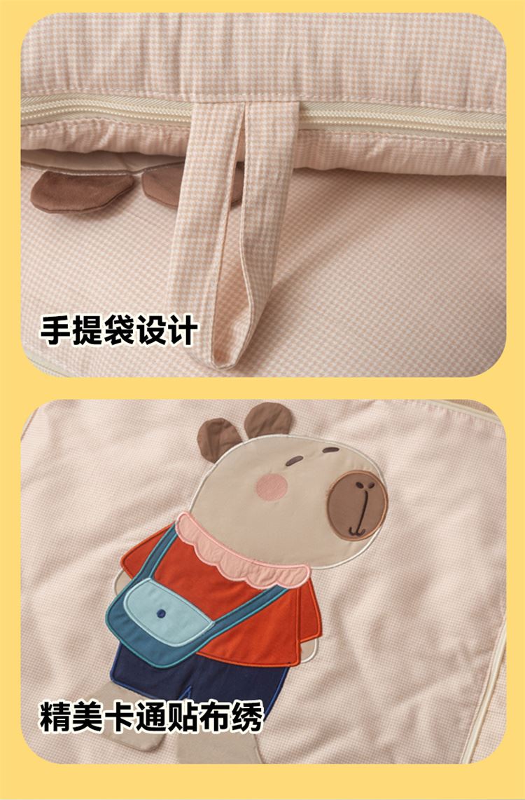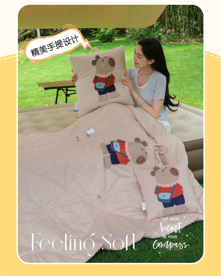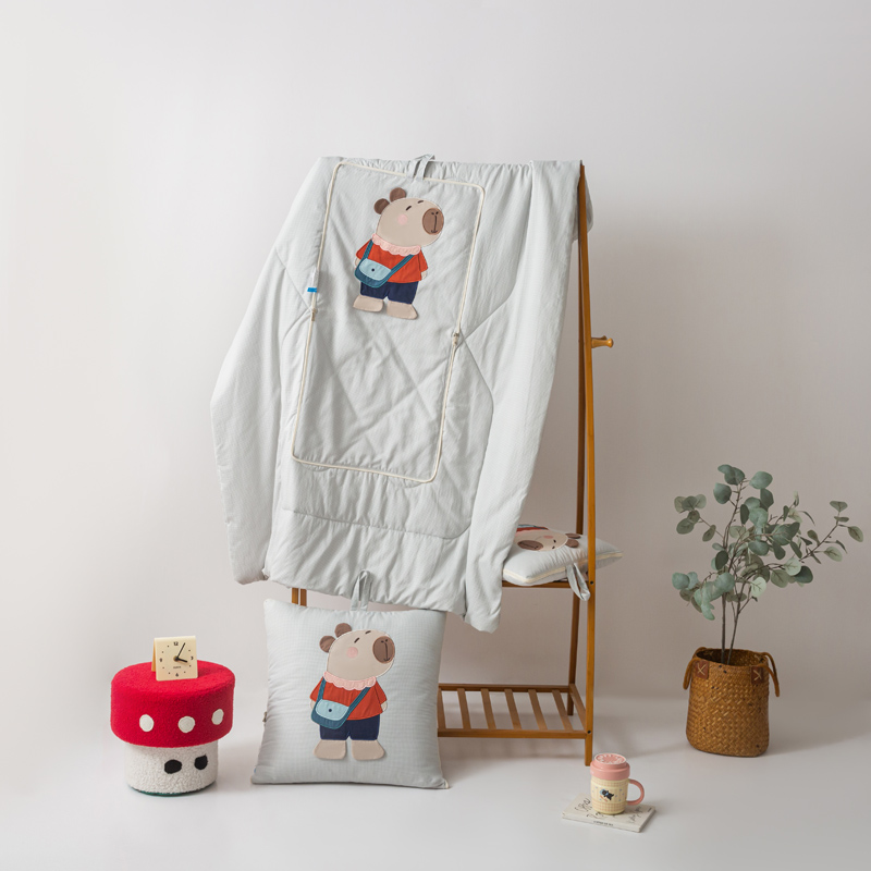 本品采用水洗糯糯棉面料,立体贴布绣设计给消费者带来不一样的感官体验,糯糯棉面料具有保暖舒适、蓬松透气、吸湿排汗、亲肤柔软舒适等特点! 面料:糯糯棉 工艺:立体贴布绣 规格:被子100*150cm 抱枕:40*40cm