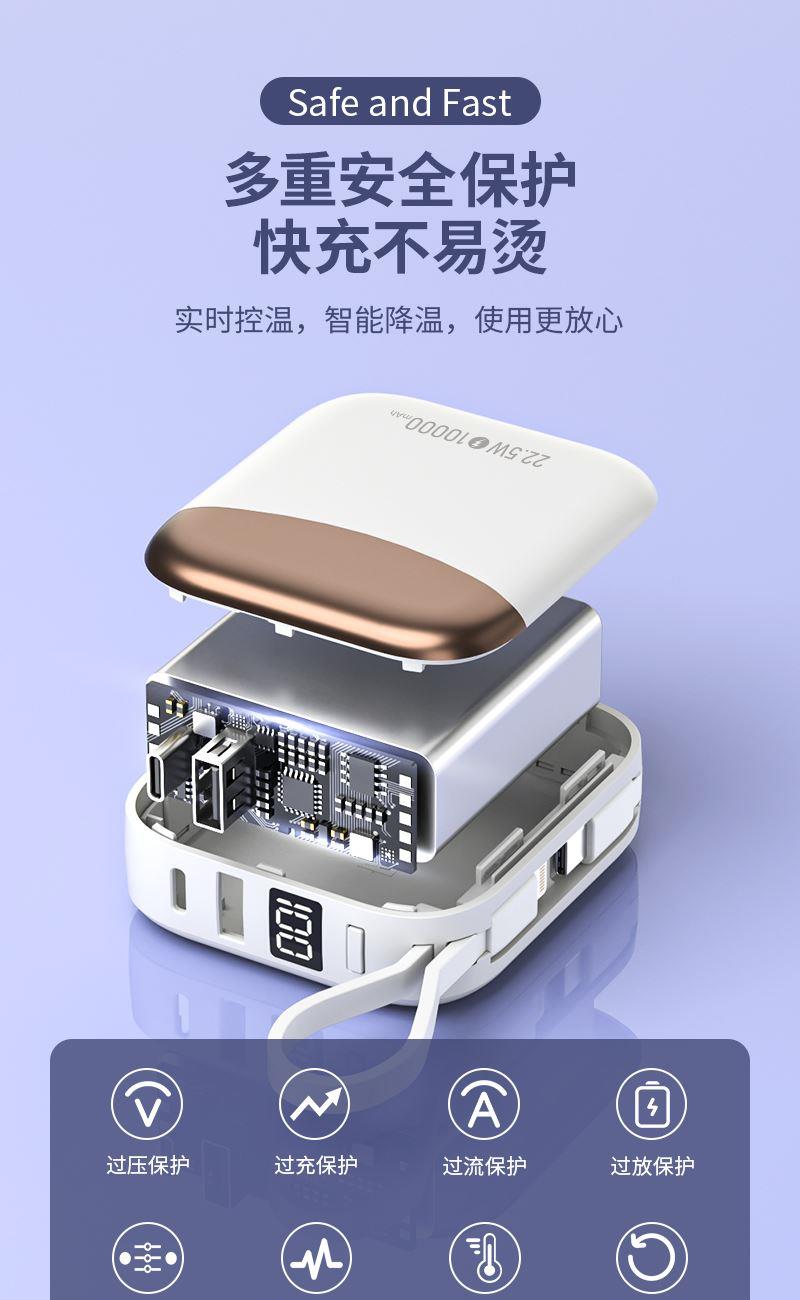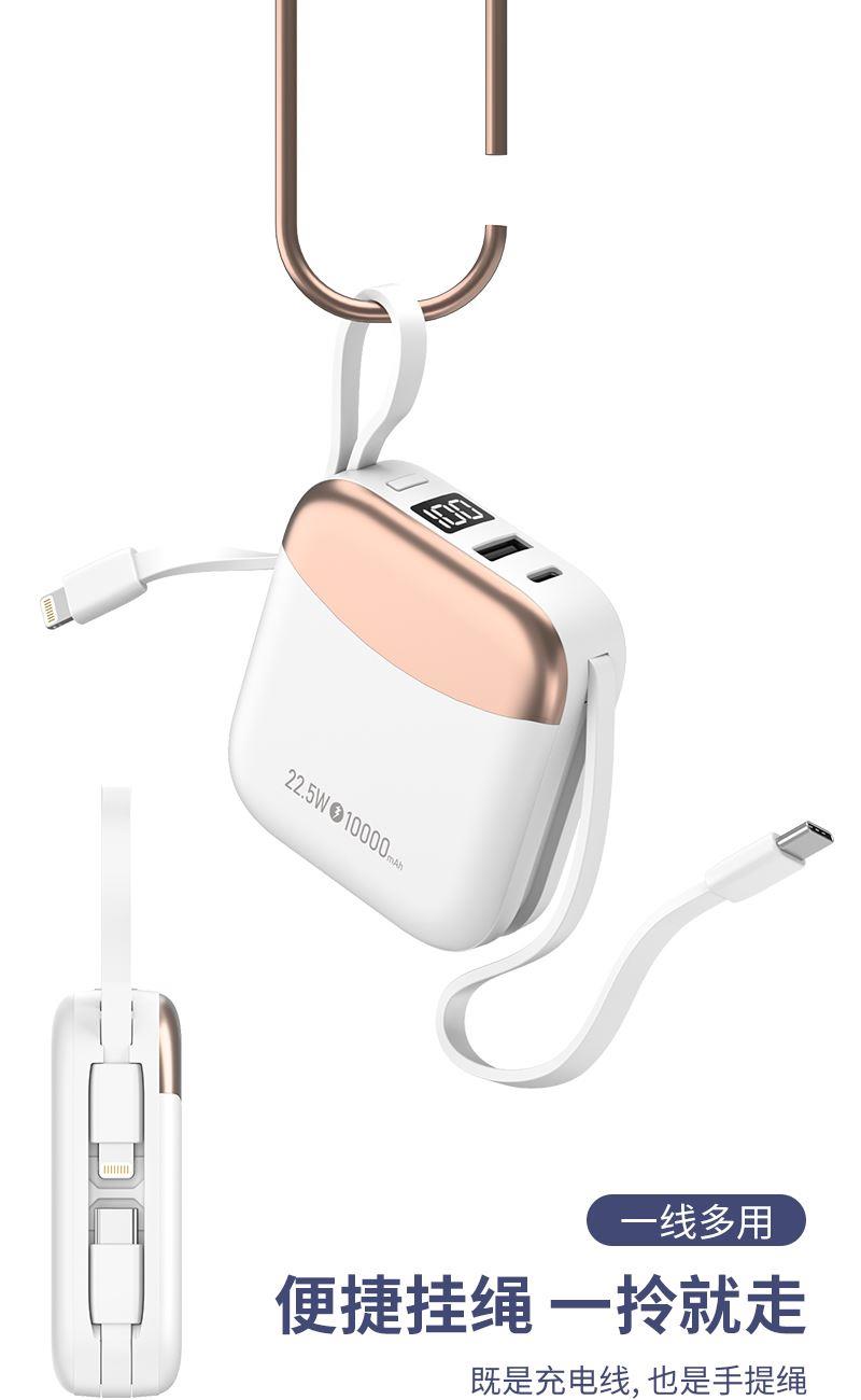 小身材,大容量,自带双线,迷你小巧快充,自带便携挂绳,一拎就走,可上飞机。