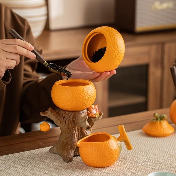 泡茶台:20.5*15.5厘米 220ml 品茗杯:6.5*3.2厘米50ml 茶海:14*7.5厘米200ml 茶叶罐:11*10厘米300ml 造型形象生动,寓意美好,天然矿物釉,高温烧制无铅镉 ,配置齐全,商务实用,搭配礼盒包装,自用赠礼两宜,用陶瓷的温润,调和生活的棱角。