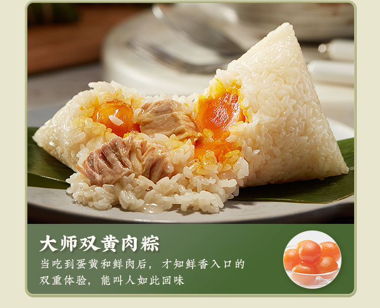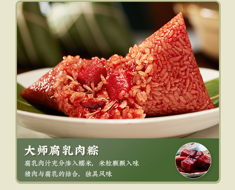 臻选短肋五花肉,肉质精实鲜美,口感醇厚;精心挑选9-12公分的高山箬叶,粽叶宽大,质感细腻;精选肥沃土地种植的稻米,米香浓厚,口感有韧劲。既可做聚会茶点,加盒牛奶又可做早餐,上市企业生产,品质有保障