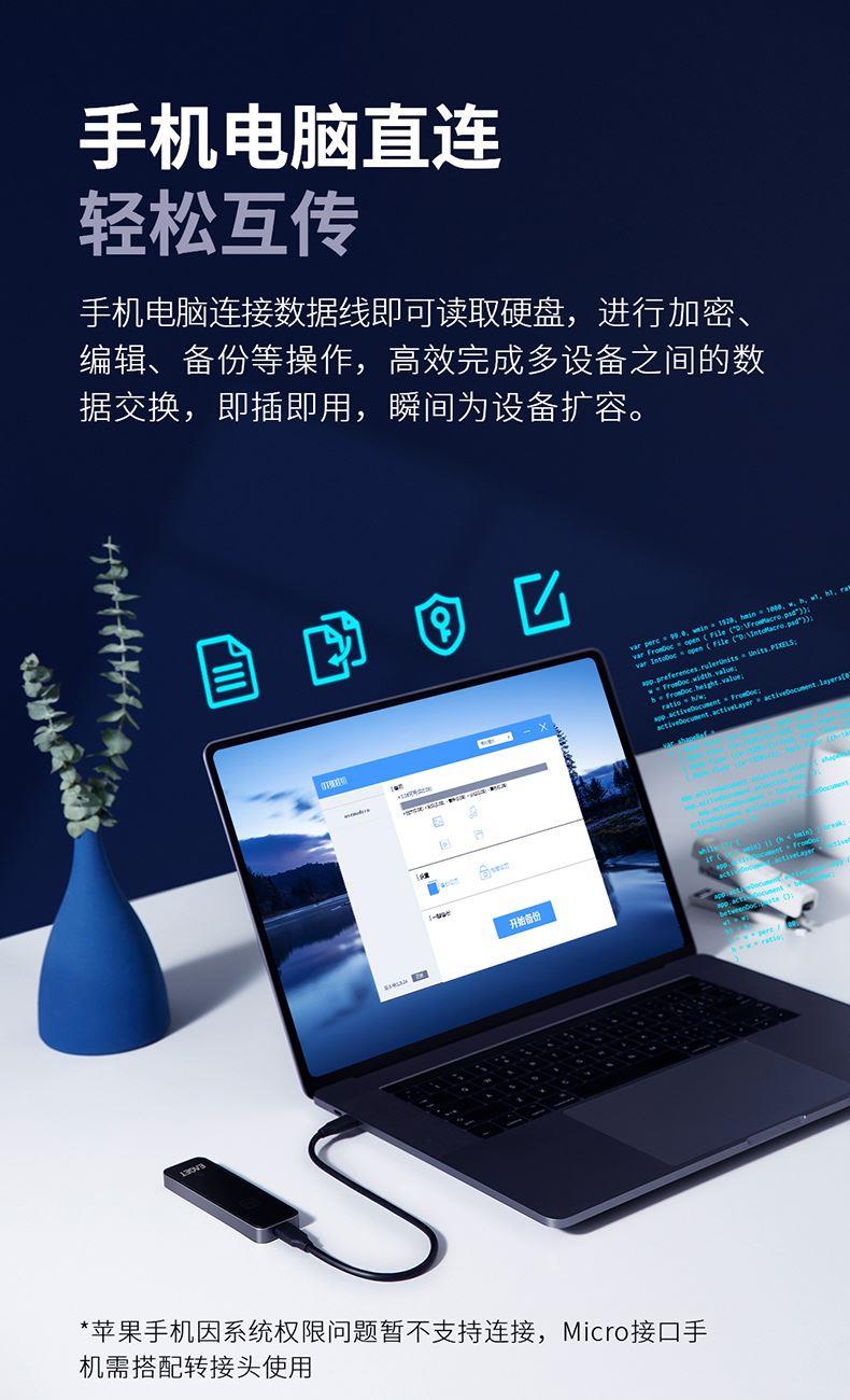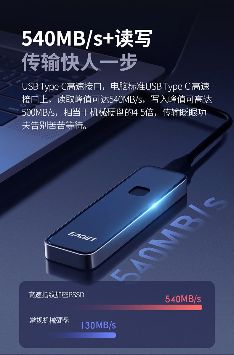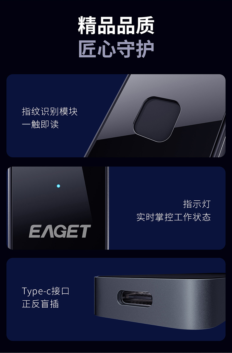 (EAGET)忆捷FM2指纹识别移动固态硬盘防震耐用1TB