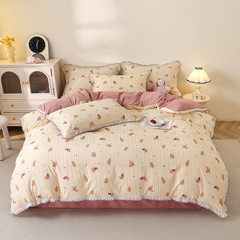 亿瞬间小清新水洗棉花边四件套