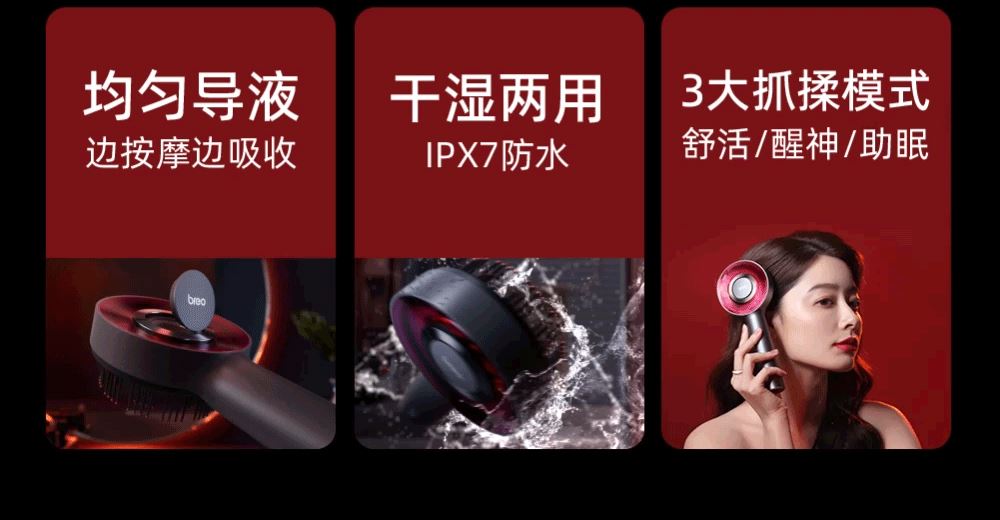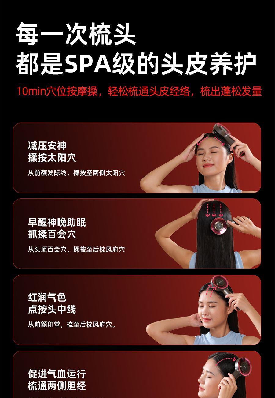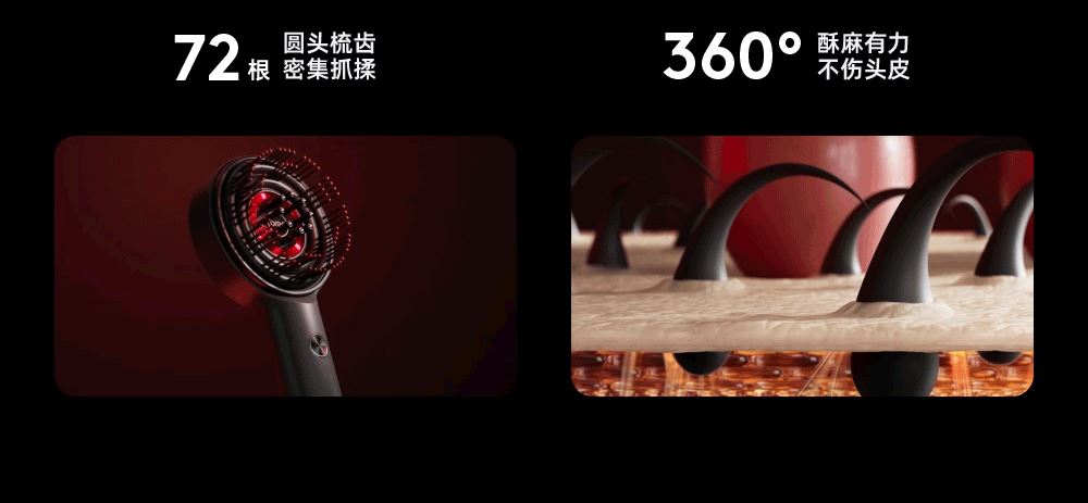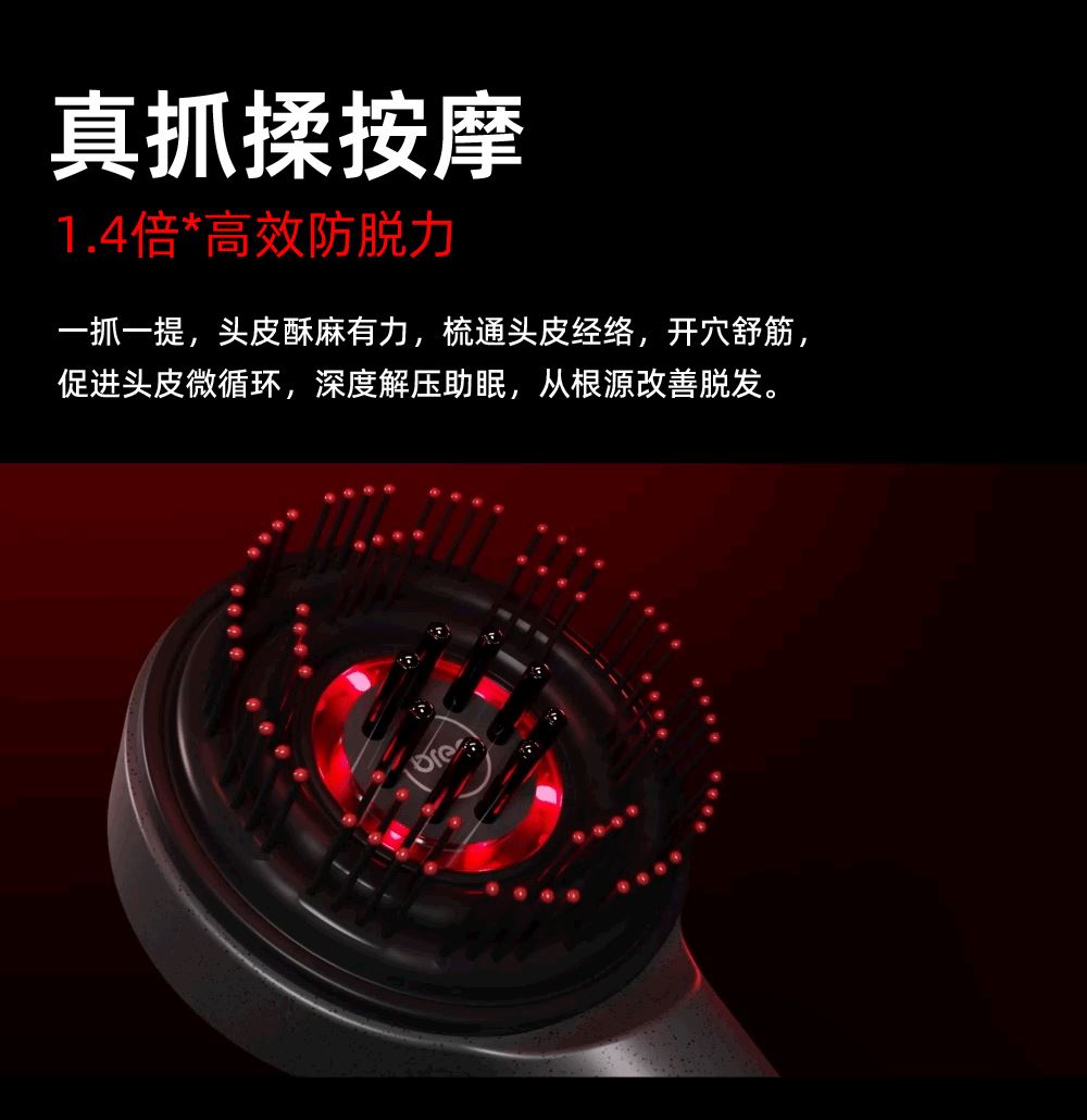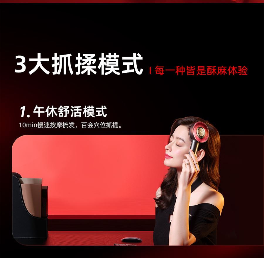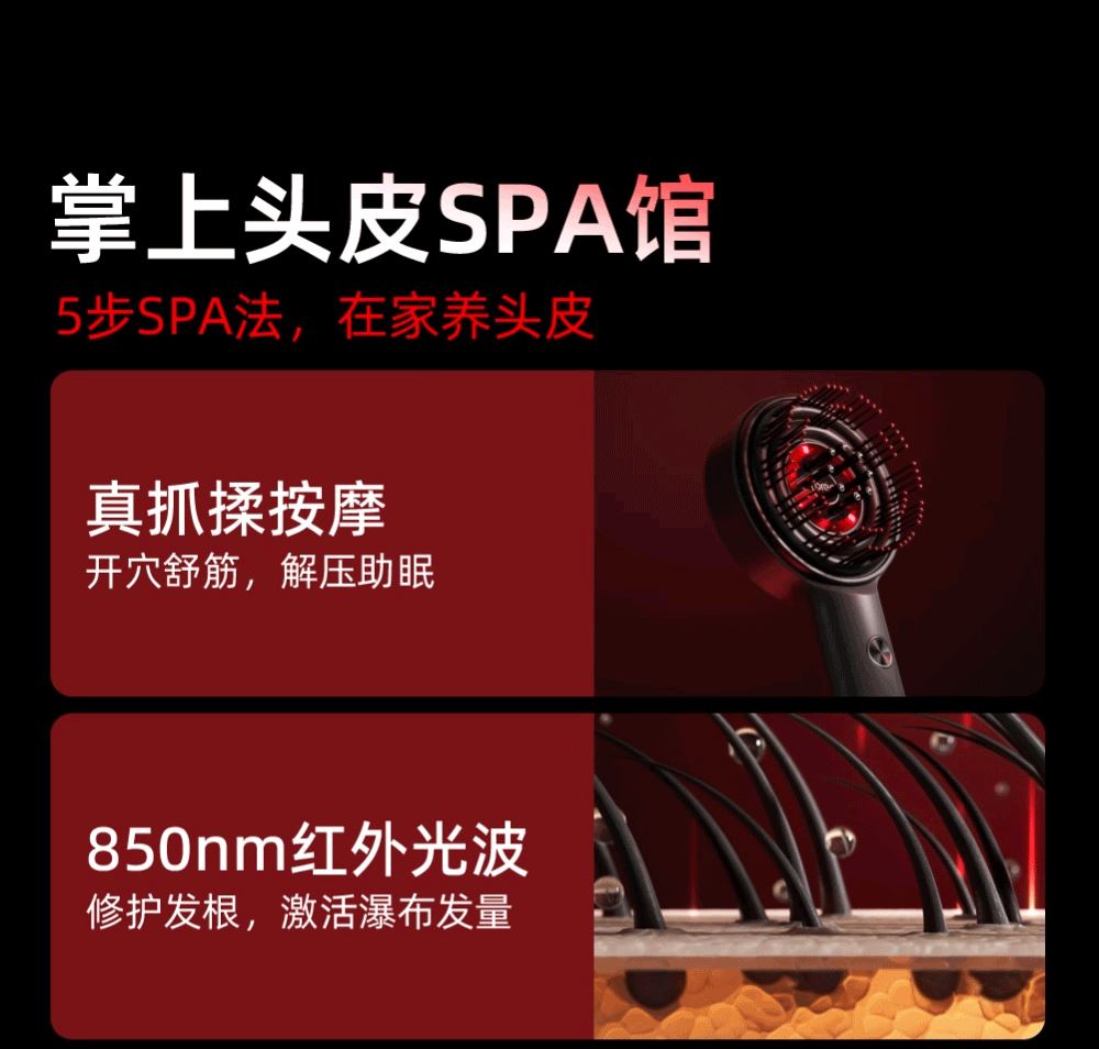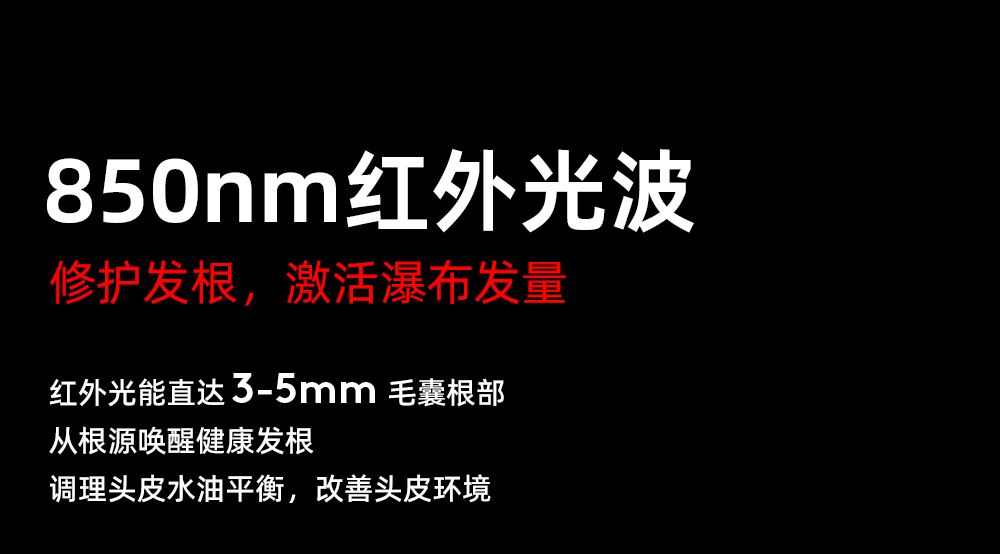 开穴舒筋,一抓一提酥麻有力疏通头皮经络,助力一夜好眠850nm红外光波 修护发根,激活瀑布发量 红外光能直达3-5mm 毛囊根部 从根源唤醒健康发根 调理头皮水油平衡,改善头皮环境边按摩边吸收 均匀出液,营养直达发根 特设者养精华导液仓,配合导液滚珠系统高效养护均匀出液营养直达发根,不粘不腻不浪费