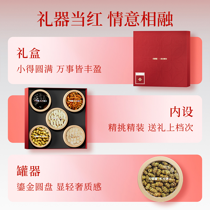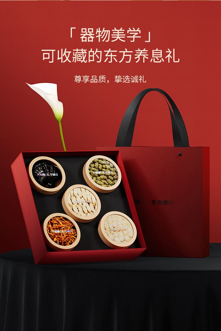东方颂230g五拼礼盒小满,含西洋参黑灵芝黄芪石斛蛹虫草五拼