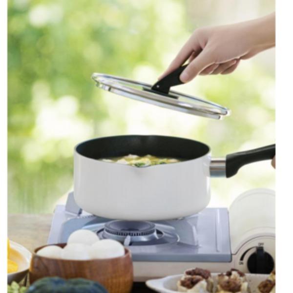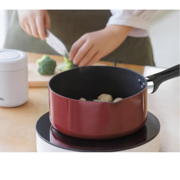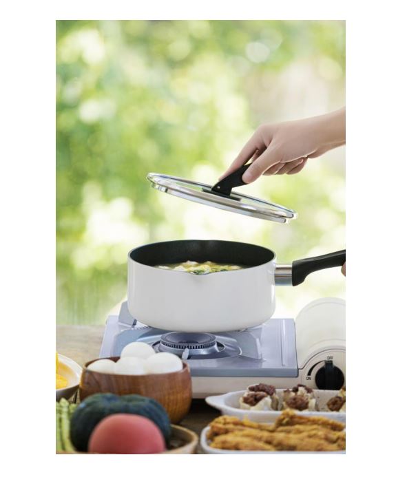 型号:TKNB-FP20 口径:20cm 容量:奶锅2.7L 煎盘:1.52L 颜色: BL 椰灰蓝 / RD 樱桃红 材质: 锅盖:玻璃+304不锈钢+硅橡胶 锅身:铝合金+不锈钢 内涂:不沾涂层