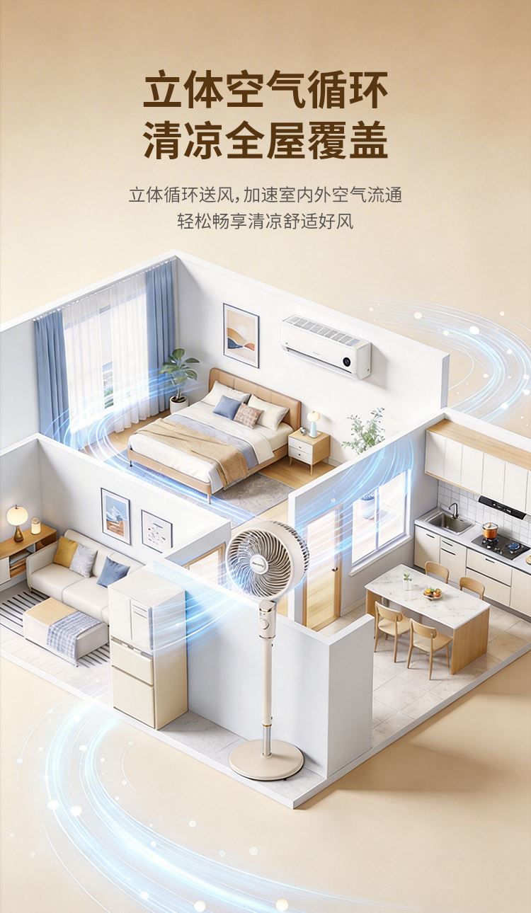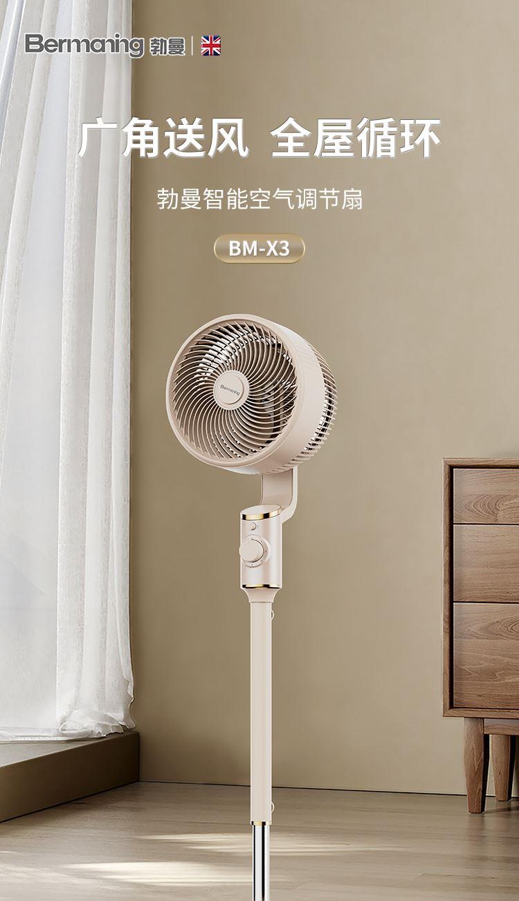 产品型号:BM-X3 额定电压:220V~ 额定频率:50Hz 额定功率:45W 净重:4.2kg 毛重:5.3kg 操作方式:机械款 涡流推射送风系统 超大倾角螺旋3片扇叶,7m/s远距离送风,清凉直达全屋 3档风速一键切换,旋钮操作简单直观 上下左右自动8字摇头,全屋空气无死角流动,清凉覆盖无遗漏 专属内置香薰设计,清风自带怡人香气,让全屋沉浸在清新氛围里 简约机身设计,时尚美观 优质稳固底盘+可升降钢管,整机运行更平稳; 隐形式提手,移动收纳更便捷。