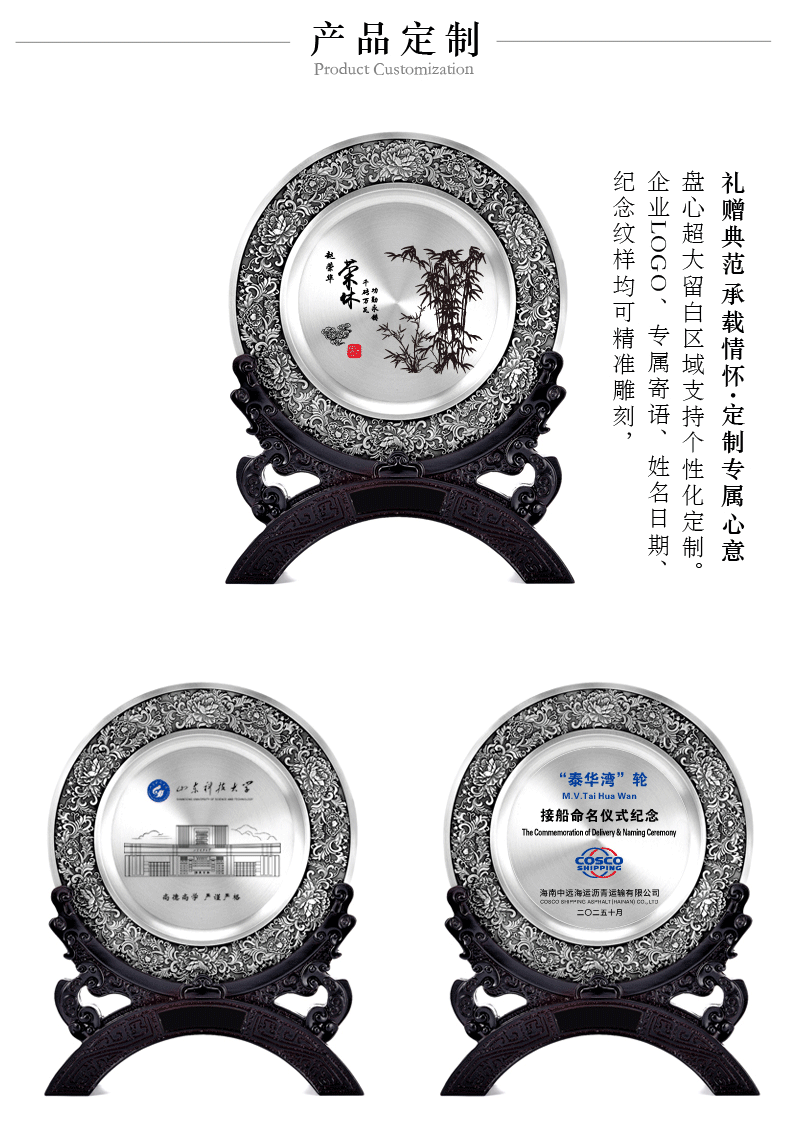 锡品源富贵绵长锡盘纪念荣休周年校庆商务奖杯手工摆件支持定制