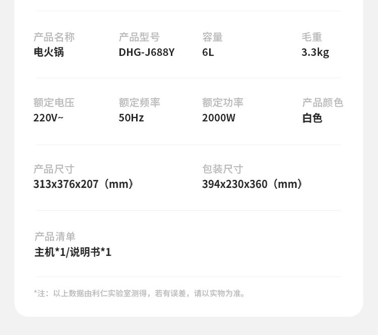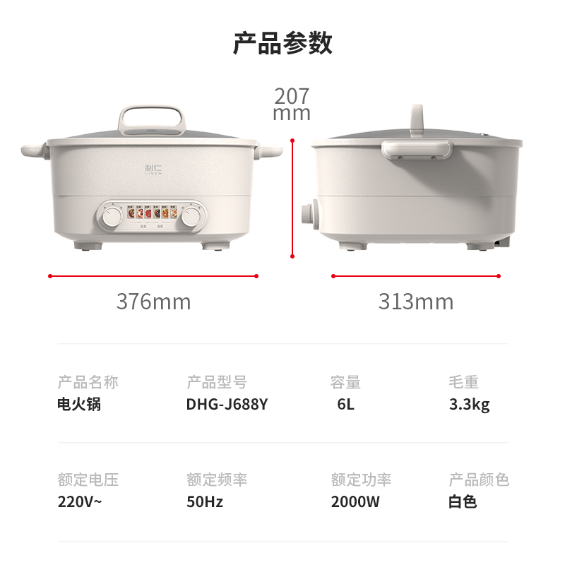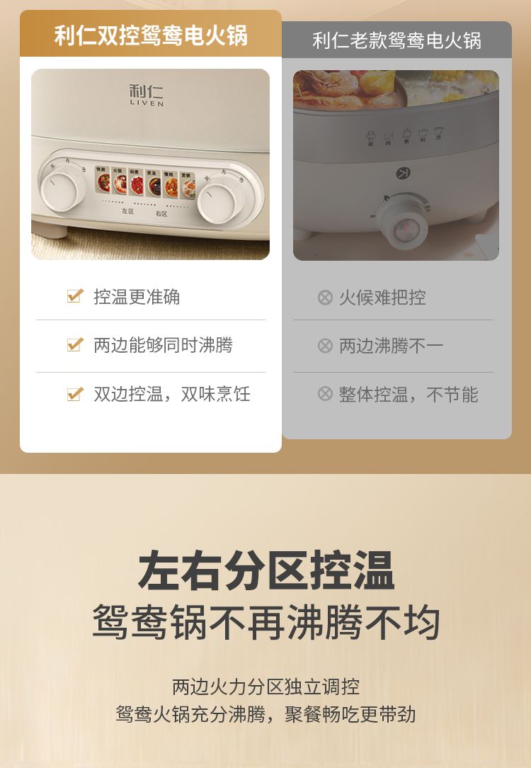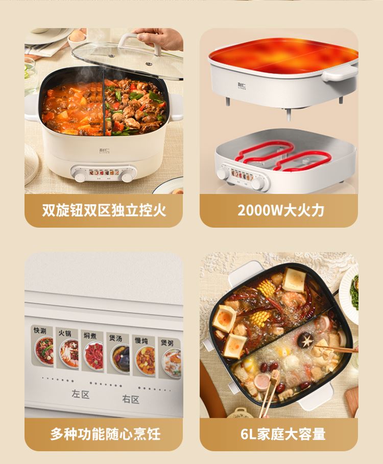 利仁6升鸳鸯火锅分区控温DHG-J688Y