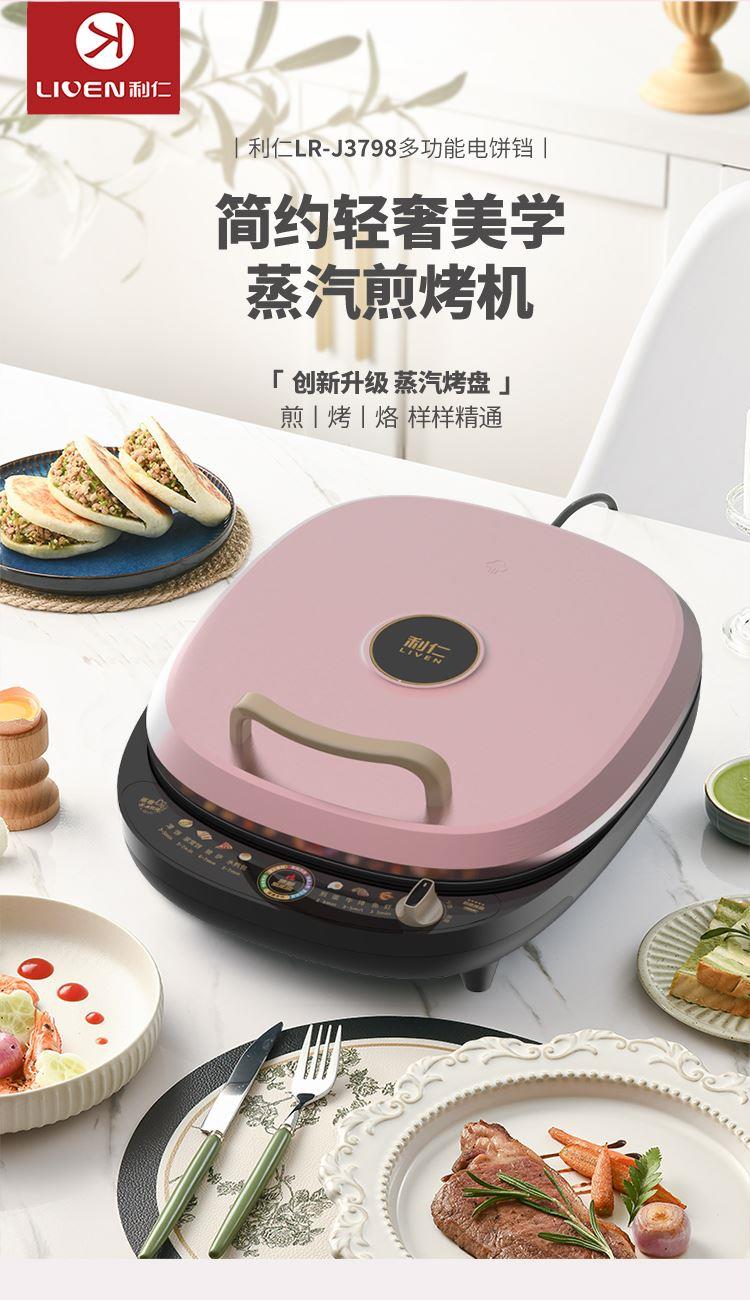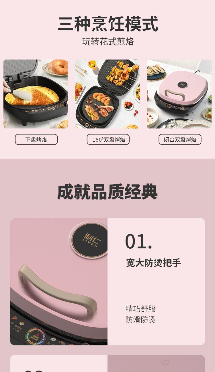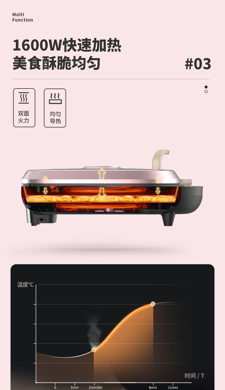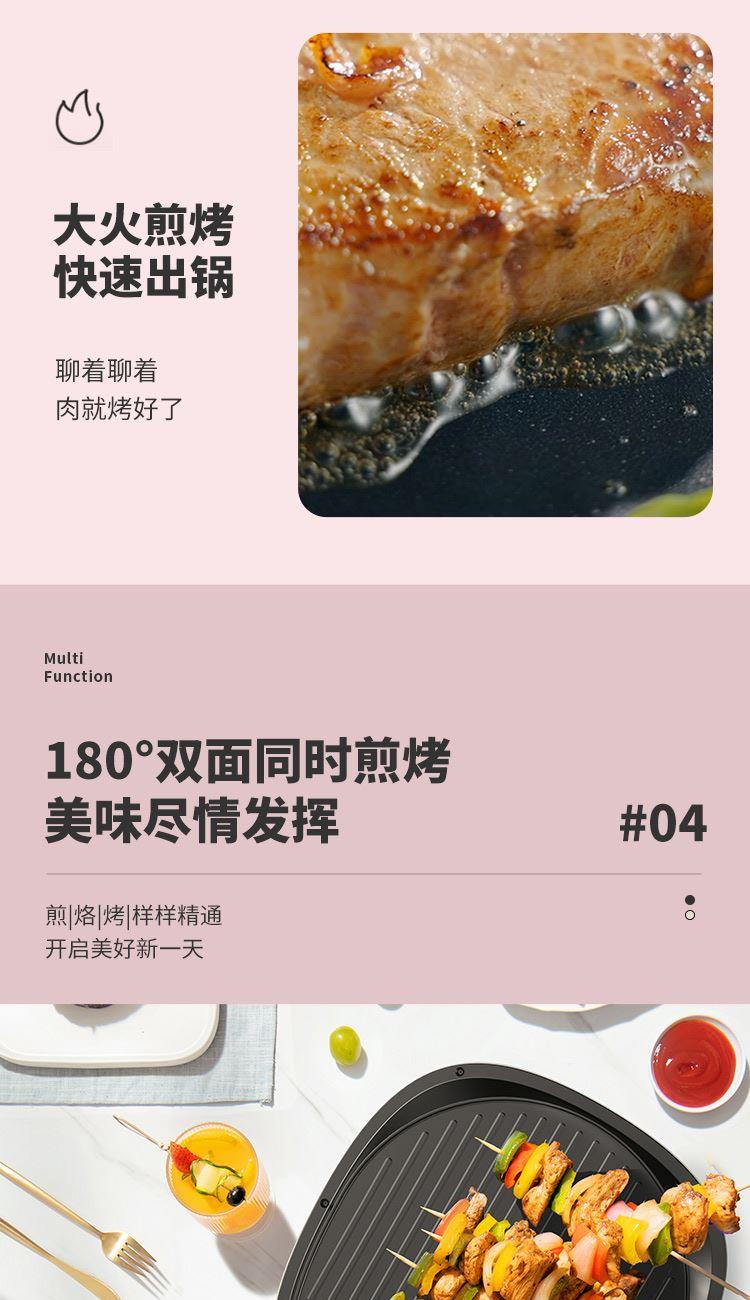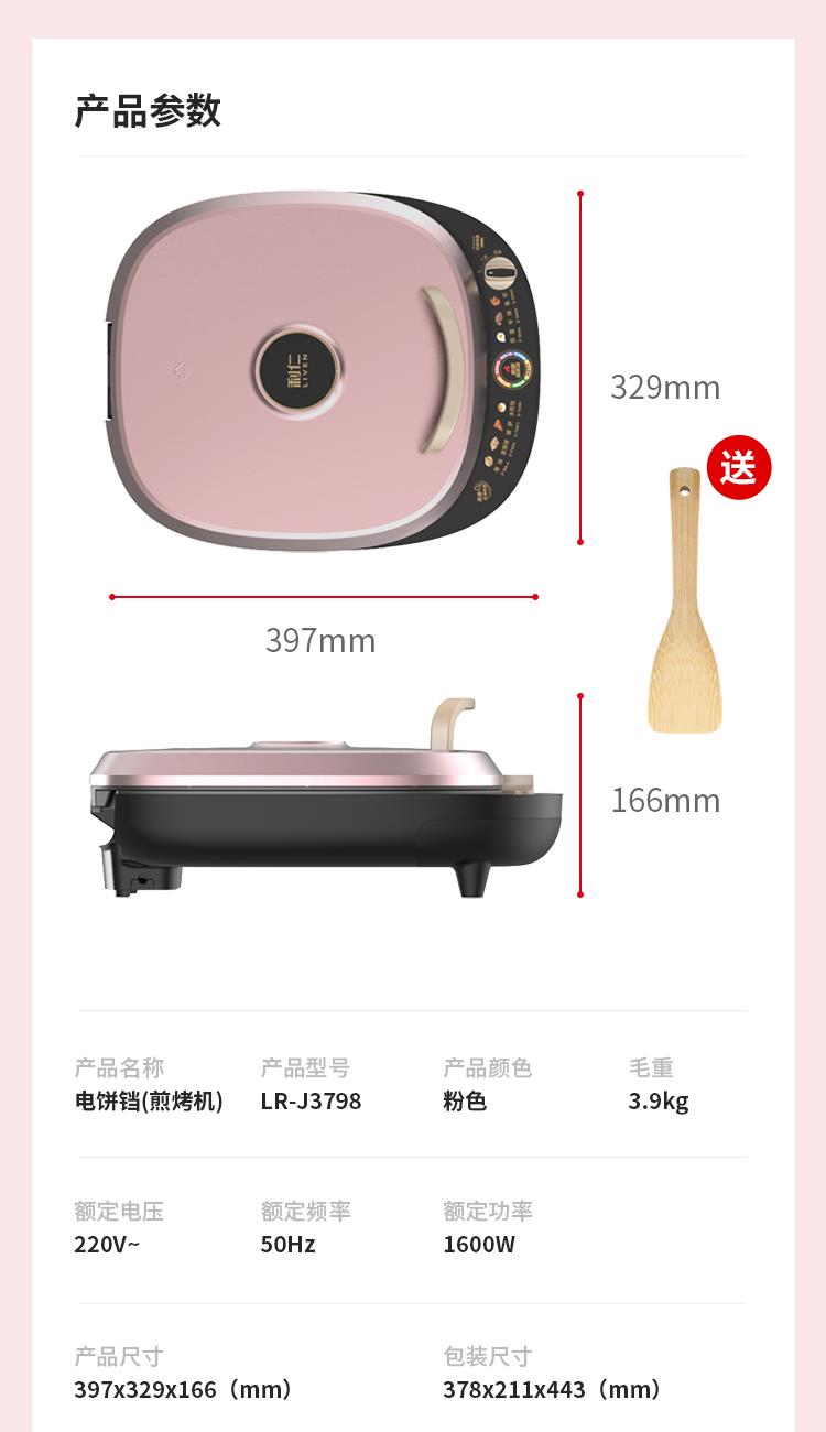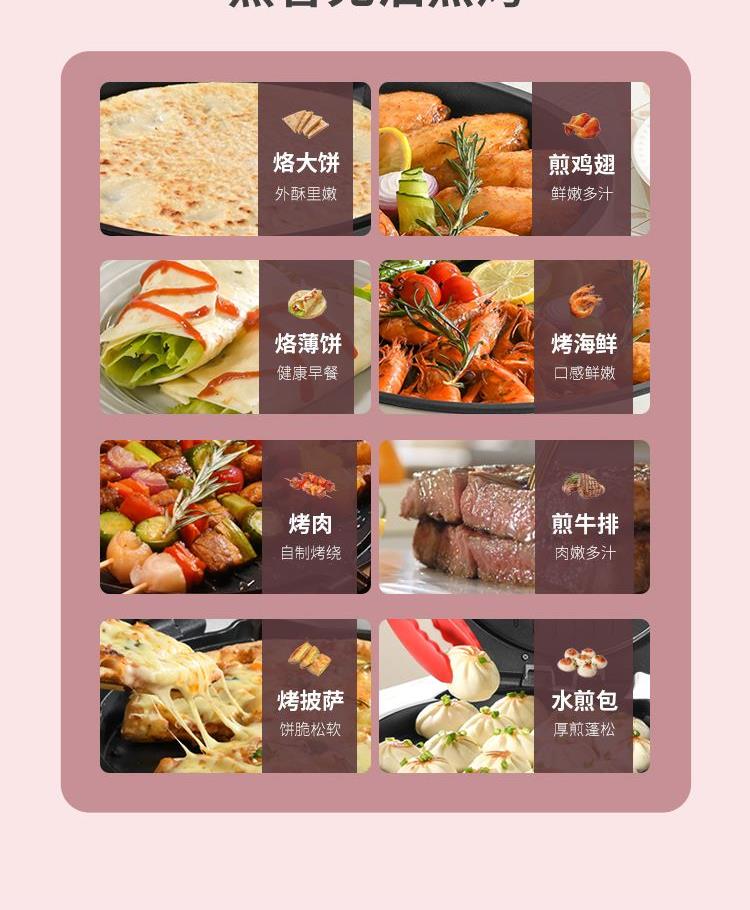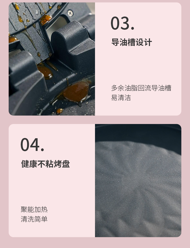 新升级蒸汽煎烤,蓬松酥脆 36mm加深烤盘,薄厚随心烙 180°展平,双面同时煎烤 1600W大功率,快速加热 健康不粘涂层,清洗简单