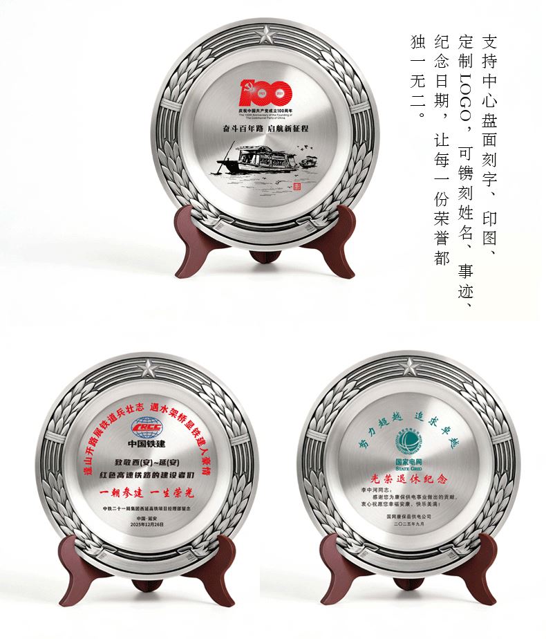 多规格可选,适配场景:提供多种尺寸规格,无论是小型表彰还是大型庆典,都能找到合适选择,满足不同礼赠与展示需求。 专属定制,承载情怀:支持中心盘面刻字、印图、定制 LOGO,可镌刻姓名、事迹或纪念语,是表彰嘉奖、周年纪念、荣休纪念、战友馈赠、商务答谢的珍贵载体。